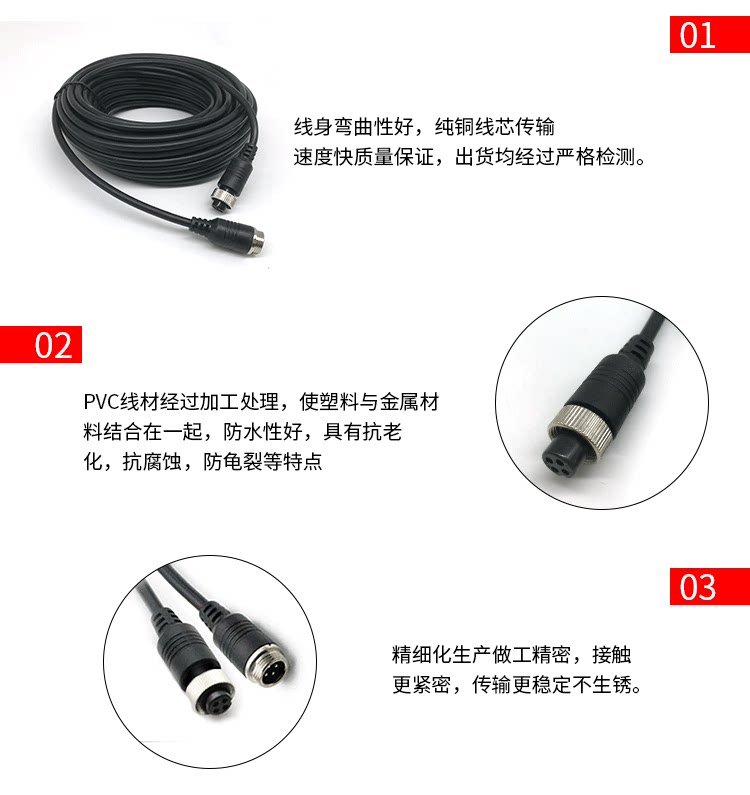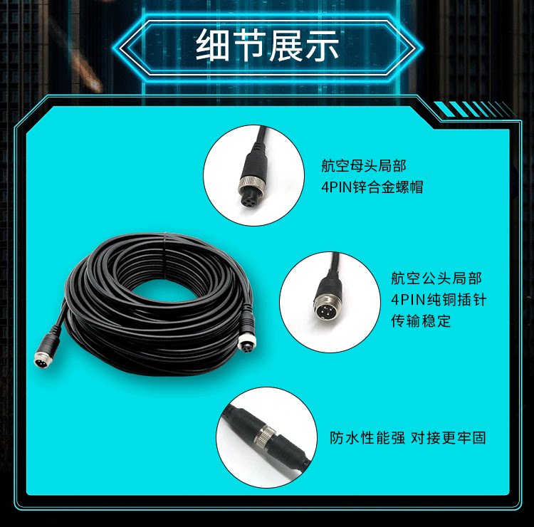 Aviation head extension line vehicle monitoring transmission line reversing image spring line camera male and female interface cable