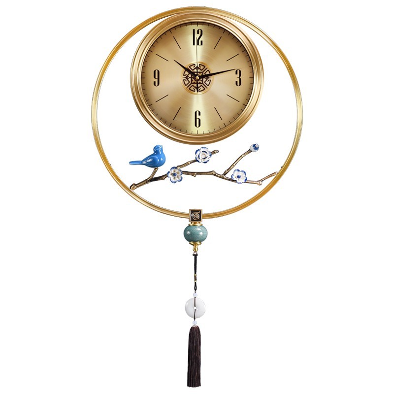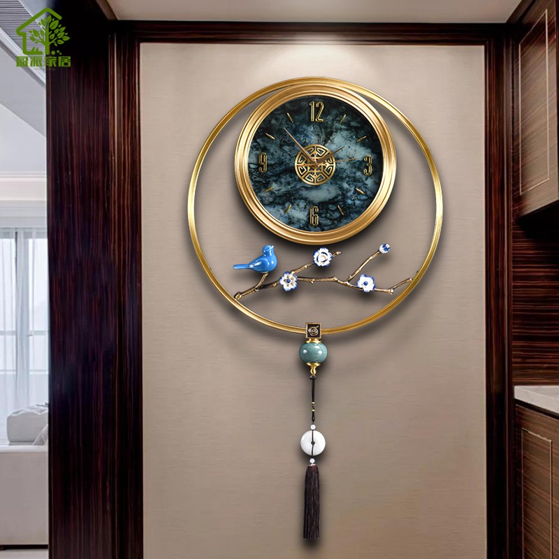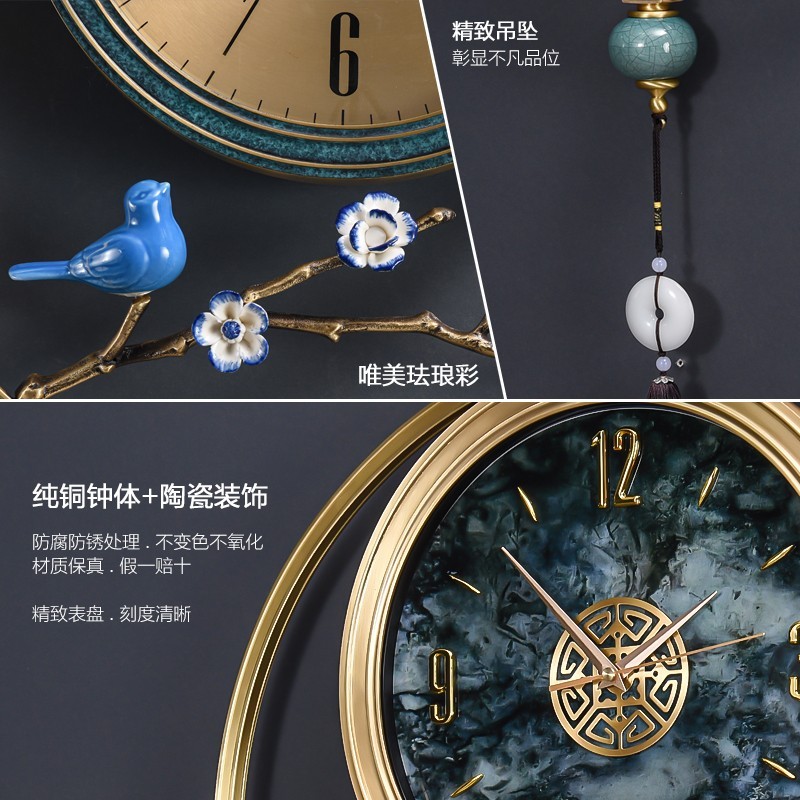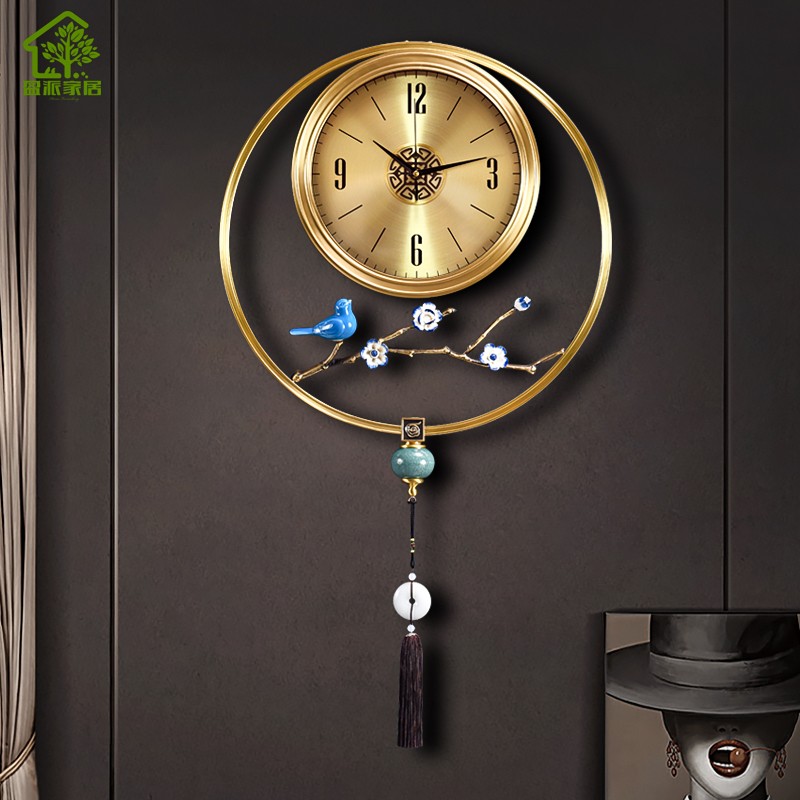 Light extravagant hanging bell modern minimalist living room home clock hanging wall pure copper New Chinese creative personality mute quartz clock-Taobao