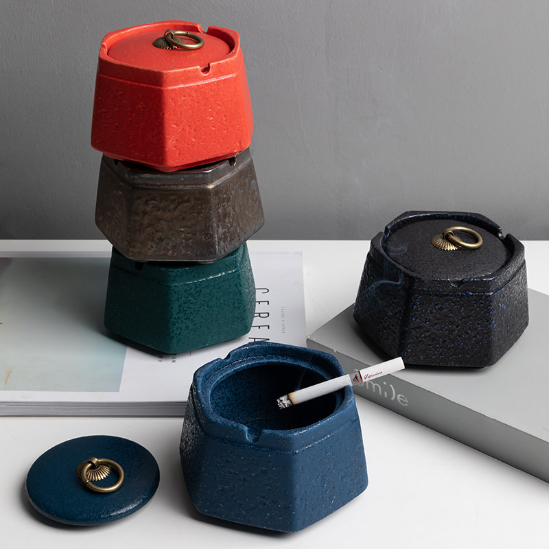 ins wind Nordic light and luxurious ceramic Ashtray Home Living Room Creative Personality Trends Office Smoke-Proof Tobacco Cylinders