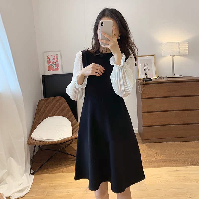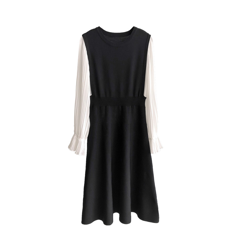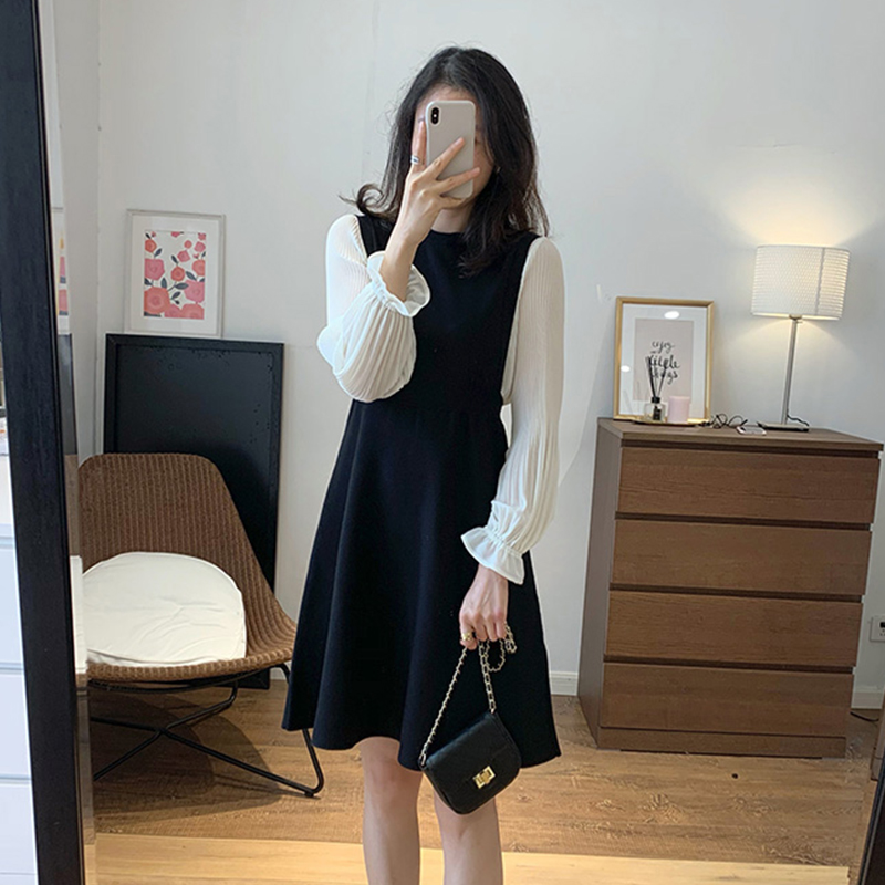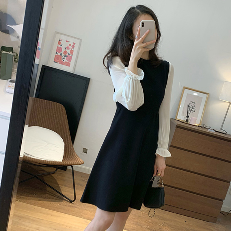 Autumn 2021 New French Retro Hepburn Style Little Black Dress Stitching Fake Two-piece Dress Feminine Temperament - Taobao