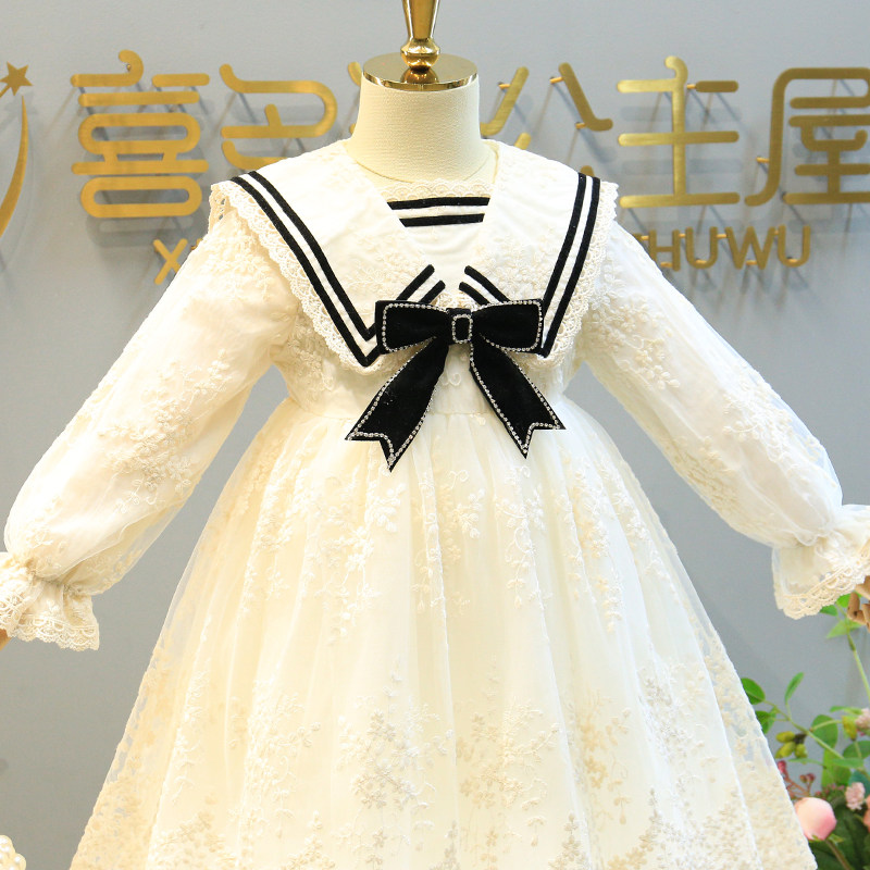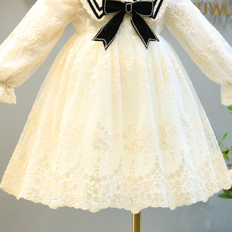 Girl Foreign Dress Princess Dress Spring Summer Dress New Lace Mesh Dress Butterfly Knot Foreign Pie Children Birthday Dress