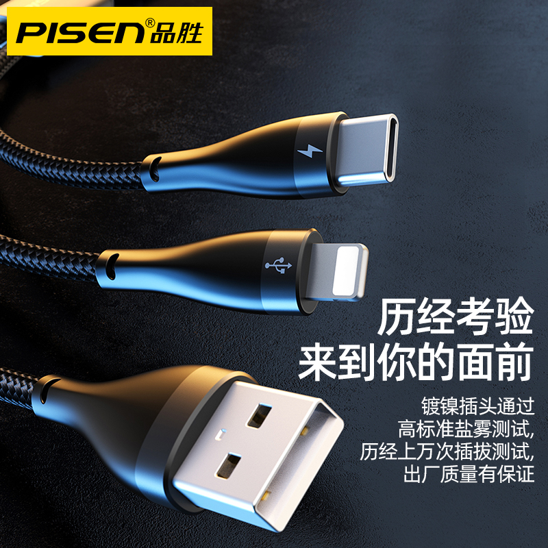 Pint Wins Apply To Data Line Three-in-one Mobile Phone Fast Charging Two-in-one Charging Line One Tug Three Heads Apple Huawei Android Typec Fast One Tugging Two-Car Charging Wire Multi-Head Multifunction