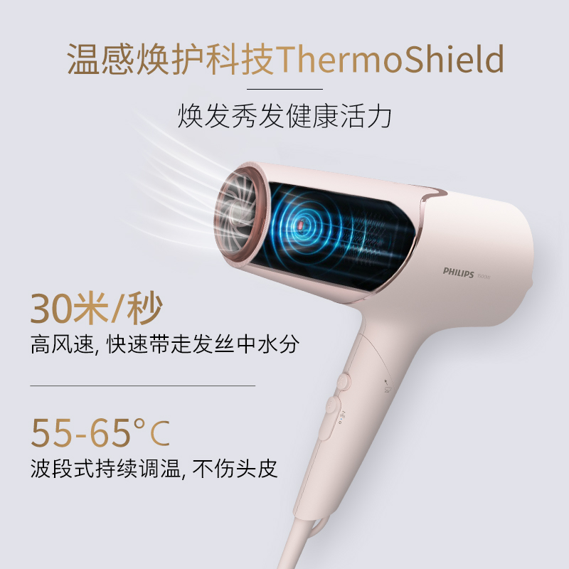 Philips Pungcheng dryer household negative ion hair protection high power speed dryer large wind power BHD 538