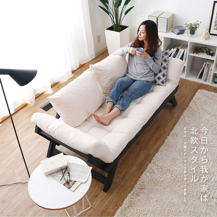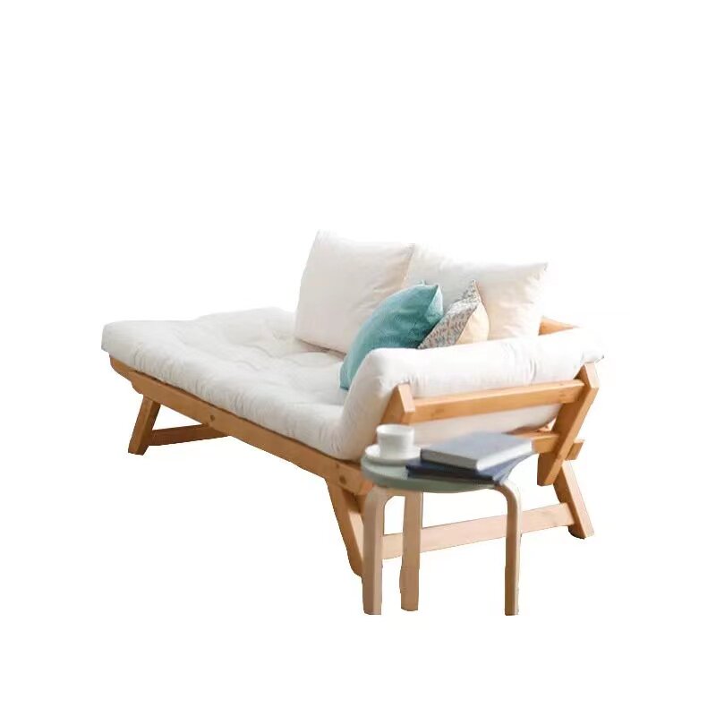 Nordic Japanese-style foldable solid wood sofa bed dual-purpose small apartment living room multi-functional single and double wash-free technology cloth