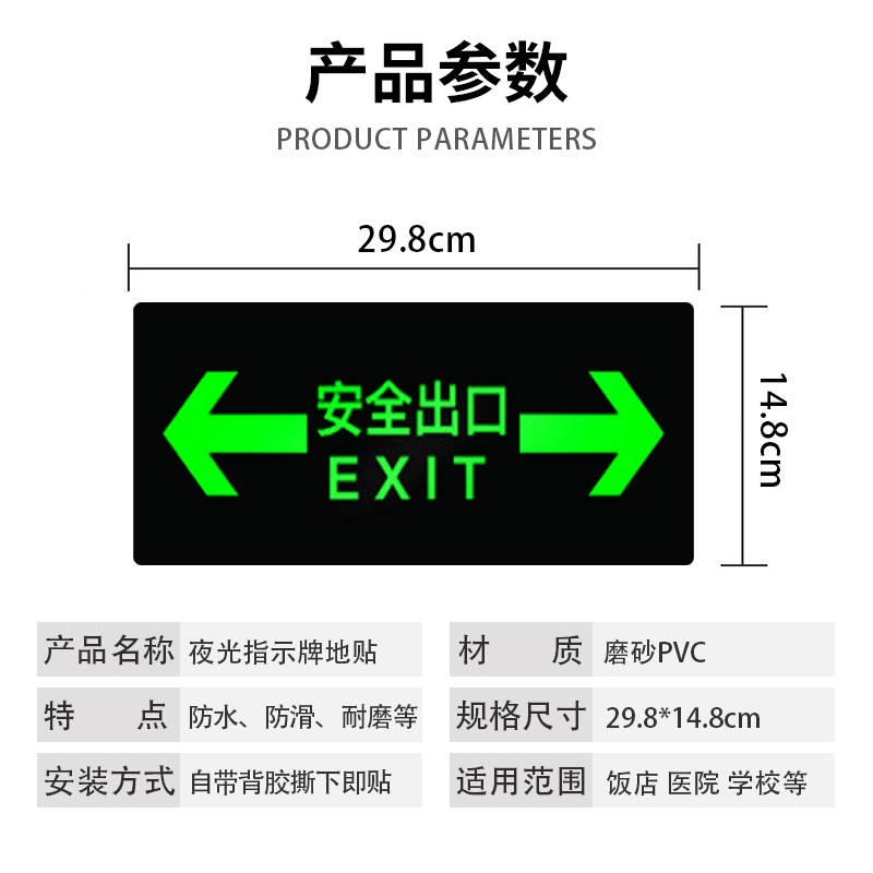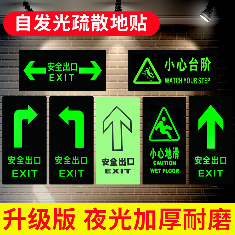 Luminous floor sticker Safe exit Emergency lighting lamps Signs Fire Sticker Fluorescent Stairway Channel Warning Mark Sticker