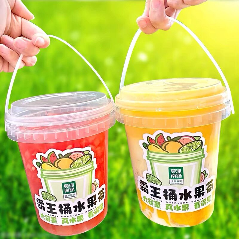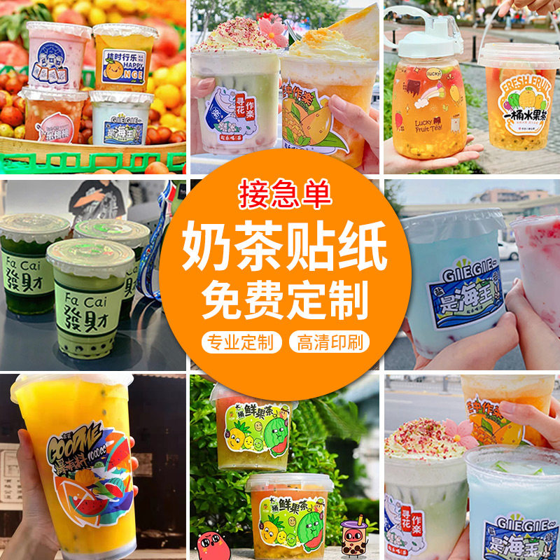 Fruit Tea Stickers Custom one bucket Duck Shit Lemon Tea Stickers Design Mesh Red Oil Mandarin Creative Logo Label two-dimensional adhesive Tae-style Milk Tea Overbearing Big Bucket Drink Bottle stickers