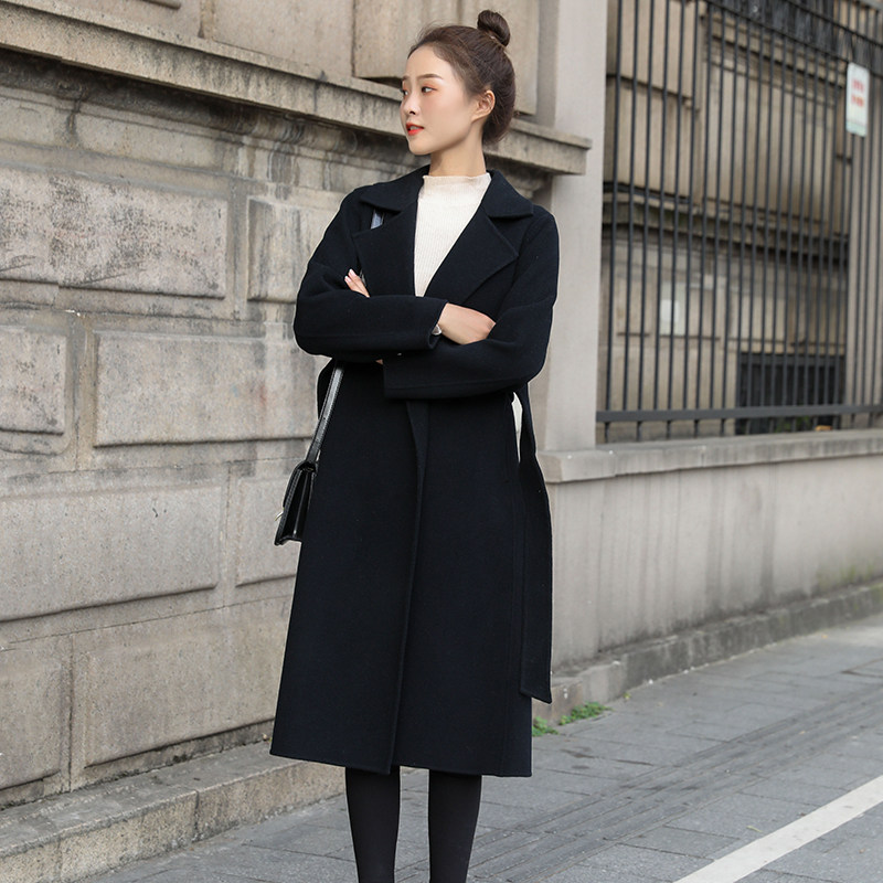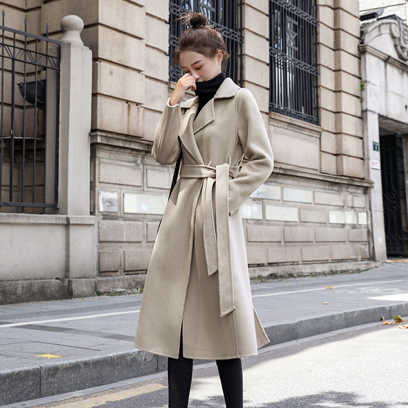 Double face cashmere Grand coat Women's medium long version 2021 New winter popular high-end Hepburn Airy Coats