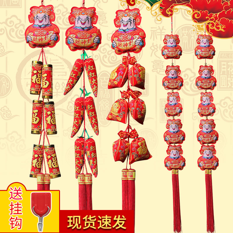 Housewarming new home God of wealth firecracker string blessing bag pendant Chinese New Year Spring Festival home decorations indoor living room home layout