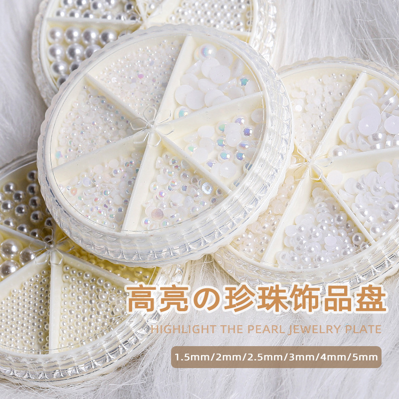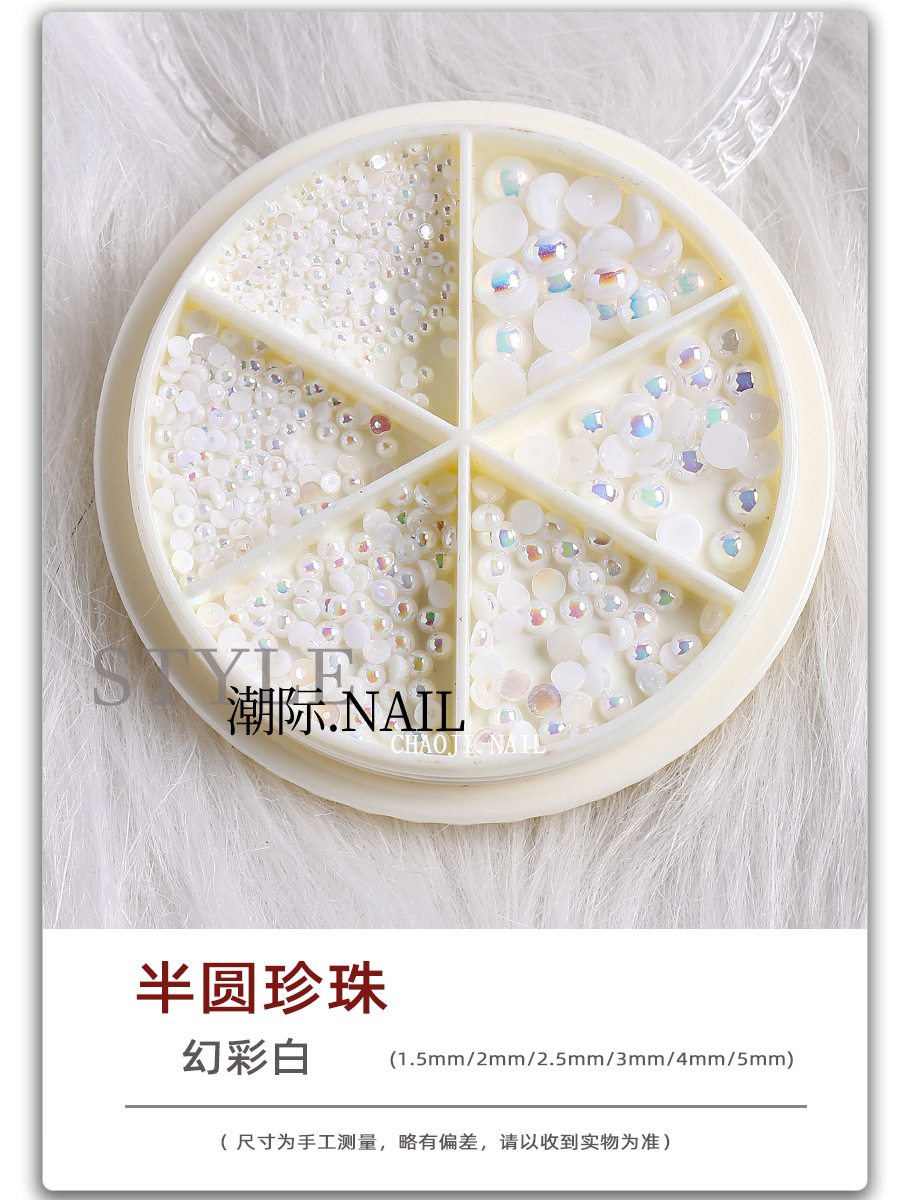 Mechia Pearl Ornament Flat Bottom White Round Pearl Full Drill Semi-circle Phototherapy Nail Decoration 6 G 1 5mm Mashup
