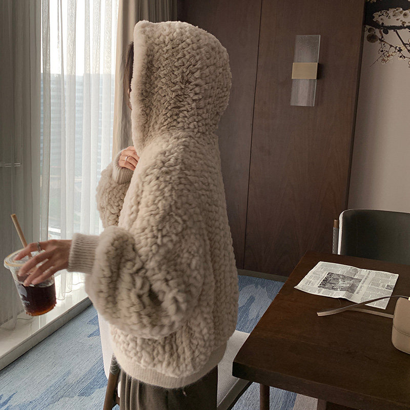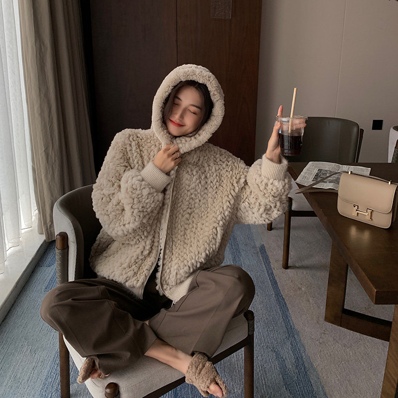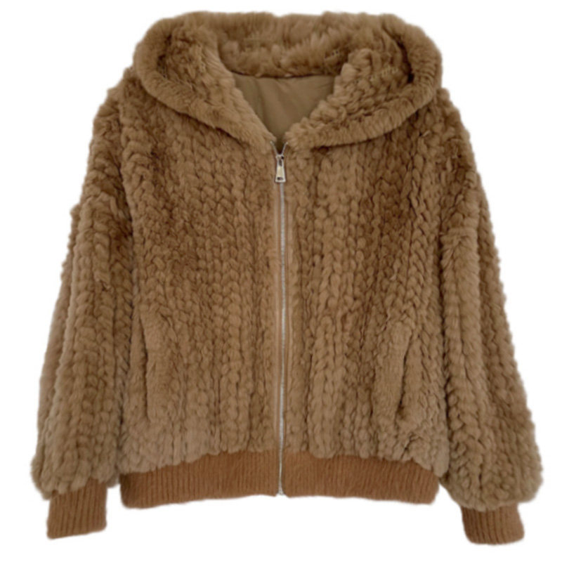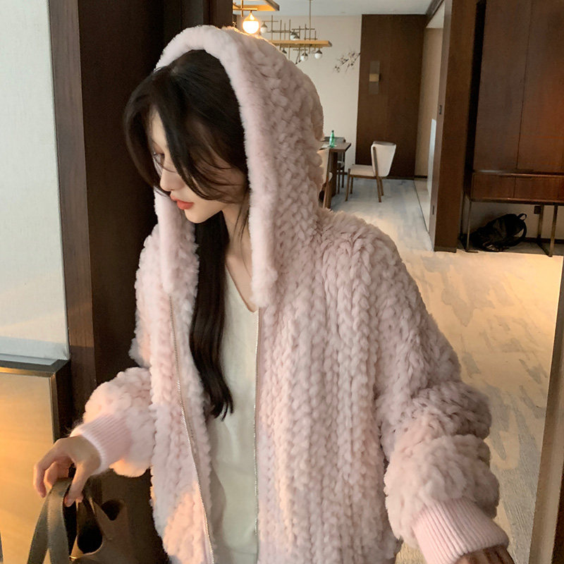 RCLIU 2022 autumn and winter new rex rabbit fur woven fur coat women's hooded fur coat young style