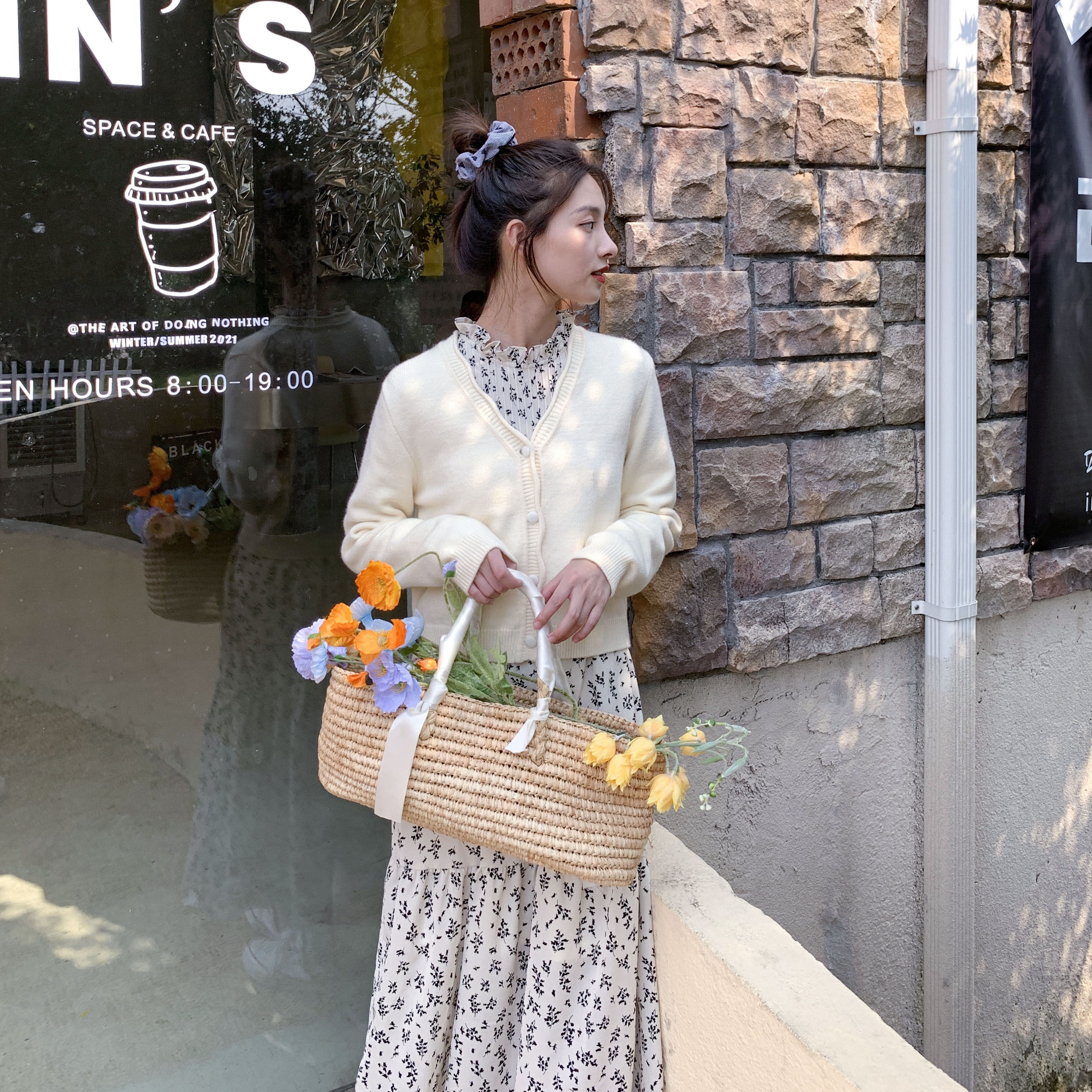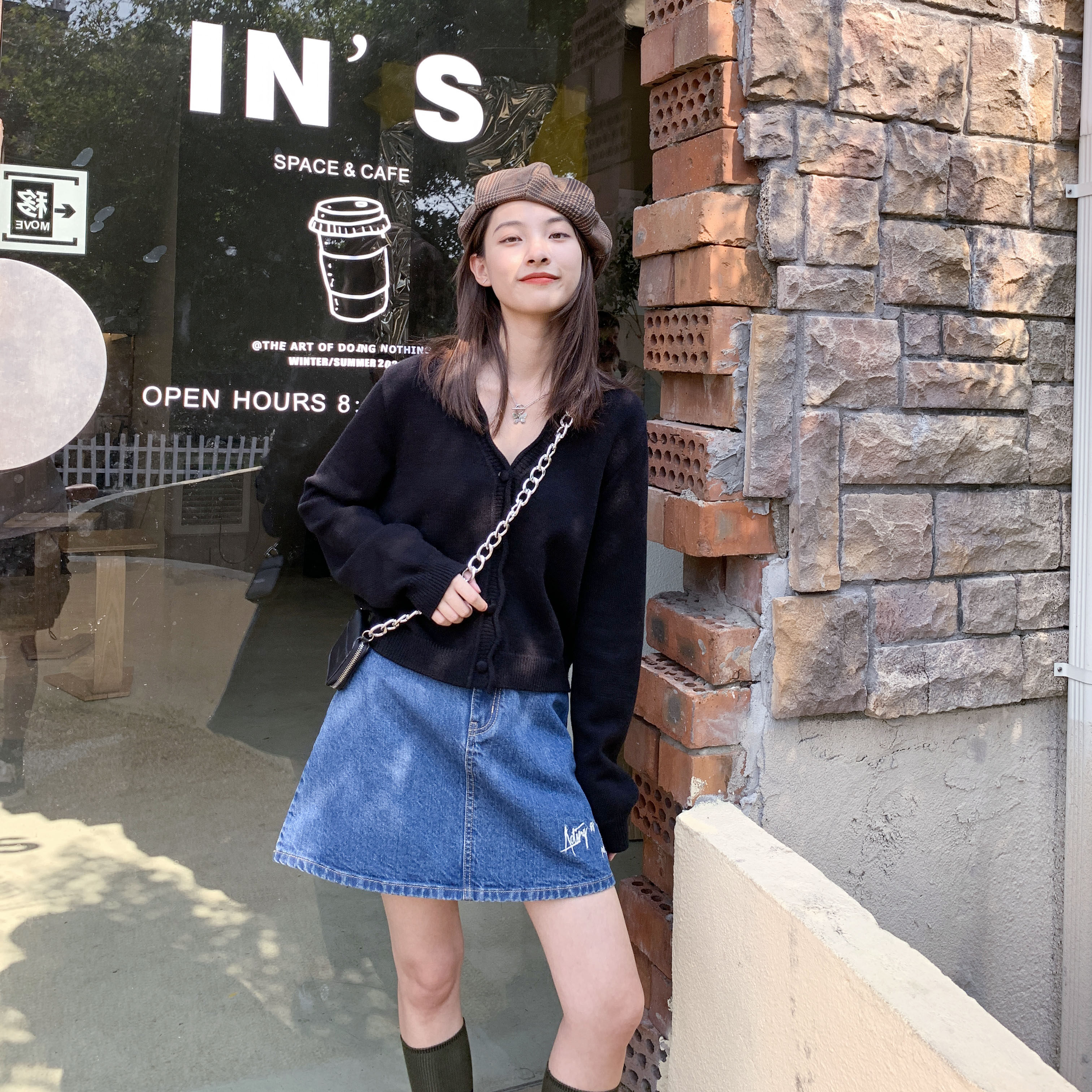 Tang Lions Spring Autumn New Women Sweater Knit Cardiovert Wear Thin Coat Sweet temperament French Agaric Side Clothes Lady Short