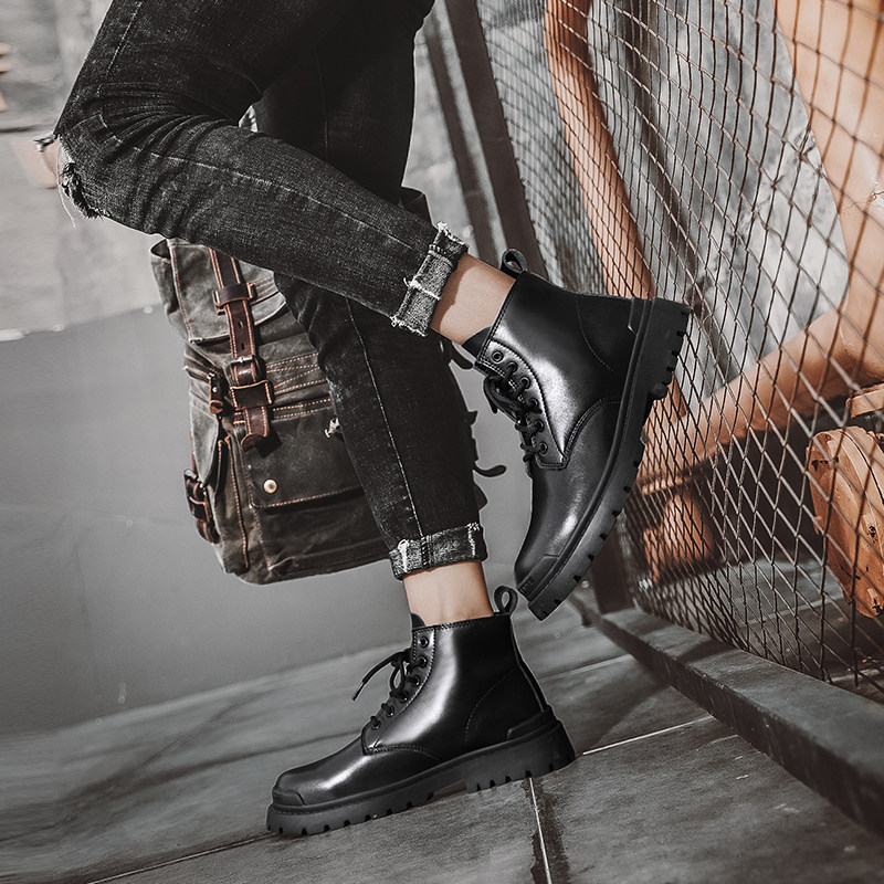 Rhodemeco leather Martin boots men's high-top British style mid-top tooling boots spring and autumn black motorcycle boots boots men