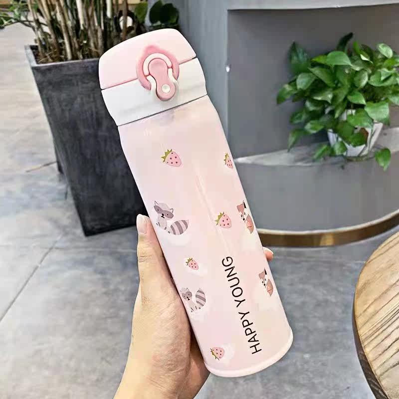 Pink Bonded Warm Water Mug Lady Net Red Student Anti-Fall Korean Version Cute Children Brief Teenage Girl Hearts Large Capacity
