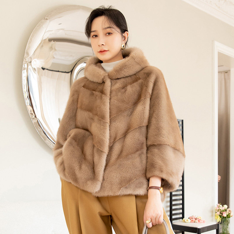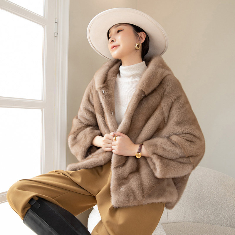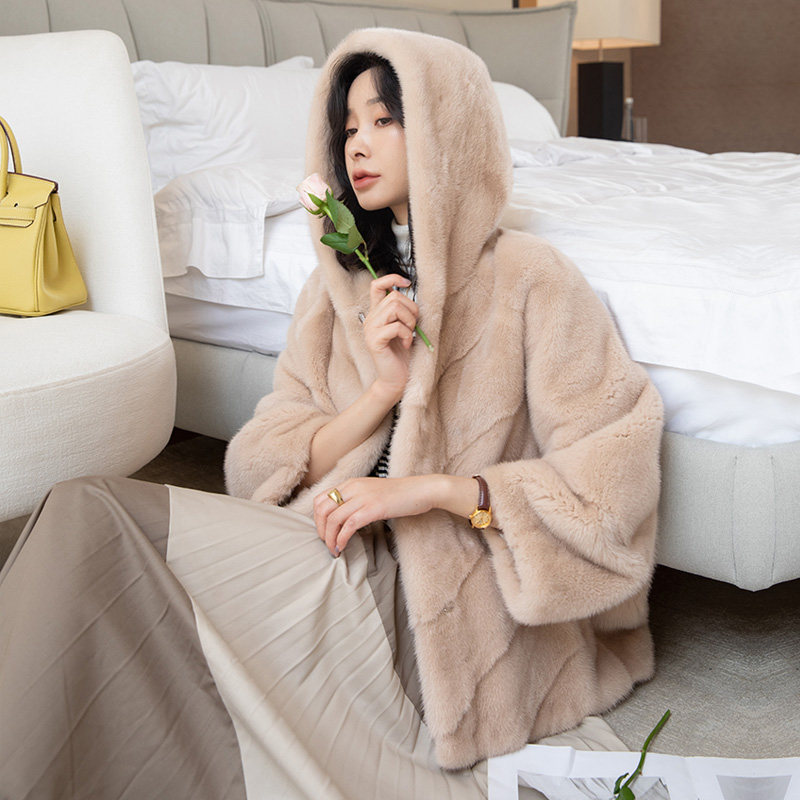Haining imported mink fur coat female mink whole mink hooded temperament ladies young fur short coat 2022 new