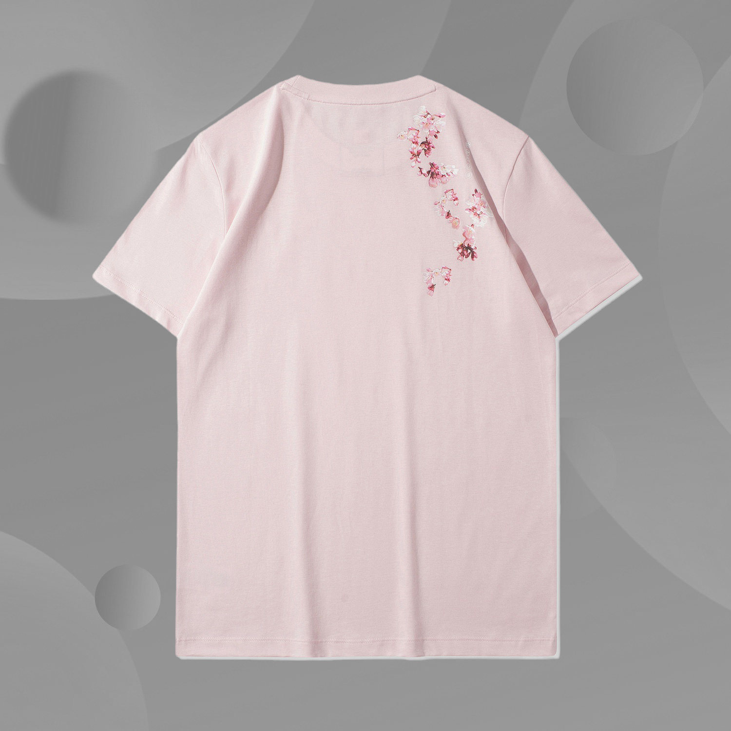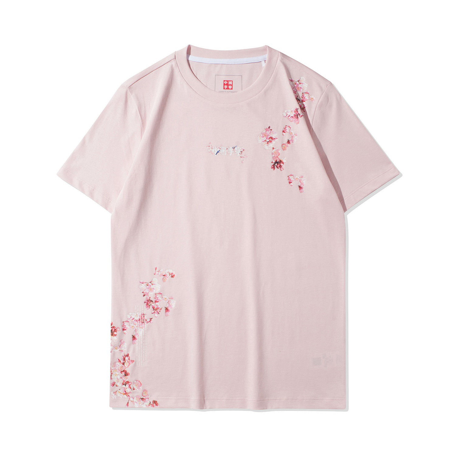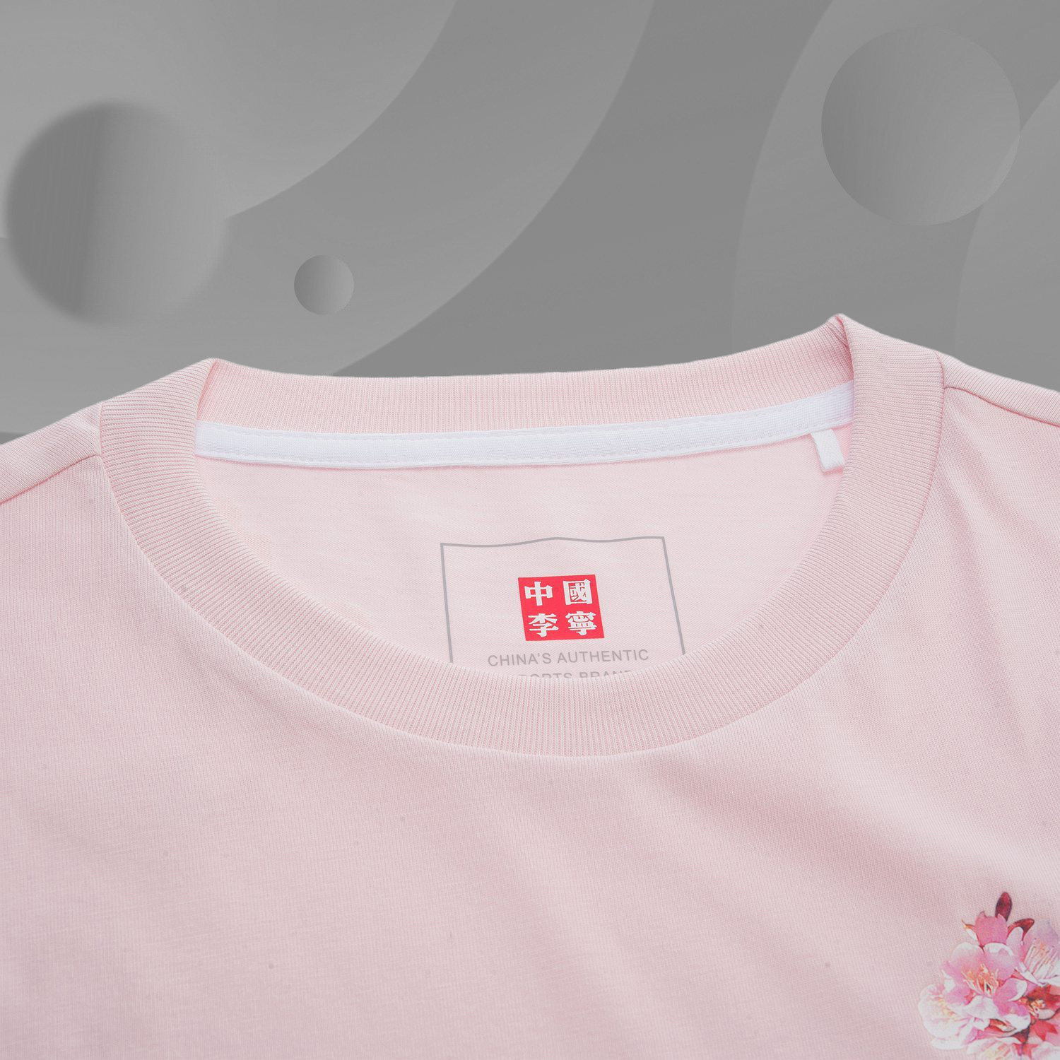 China Li Ning Short Sleeve T Shirt Women Summer New Sakura Cultural Shirt Casual Costume AHSR 626
