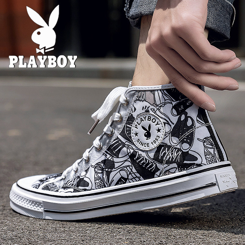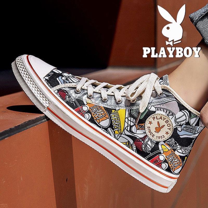 Floral Playboy men's shoes 2022 New Summer Breathable Sail Fabric Shoes Slim high cylinder casual board shoes 100 hitch Shoe shoes
