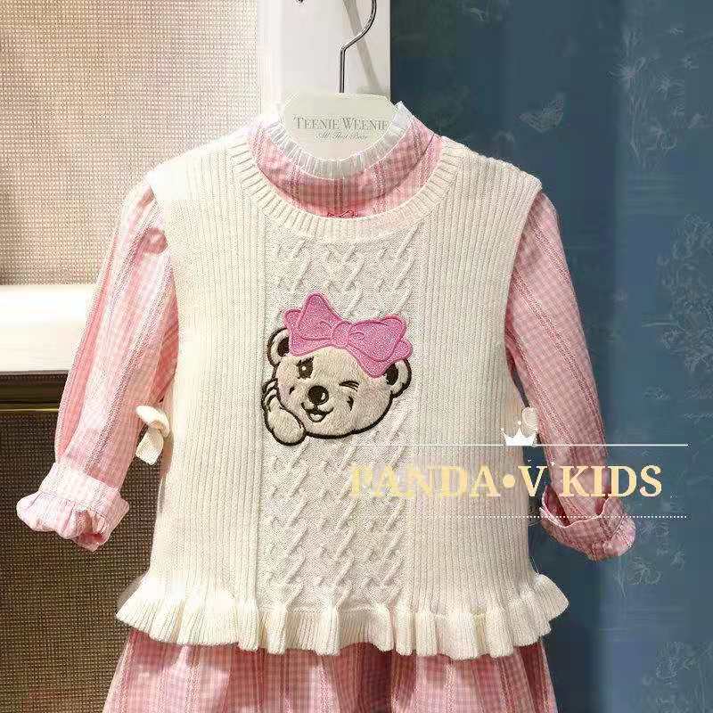 TW small bear children's clothing girl-knitted sweatshirt butterfly knot lotus leaf side vest children sweater waistcoat T0KN217854Y
