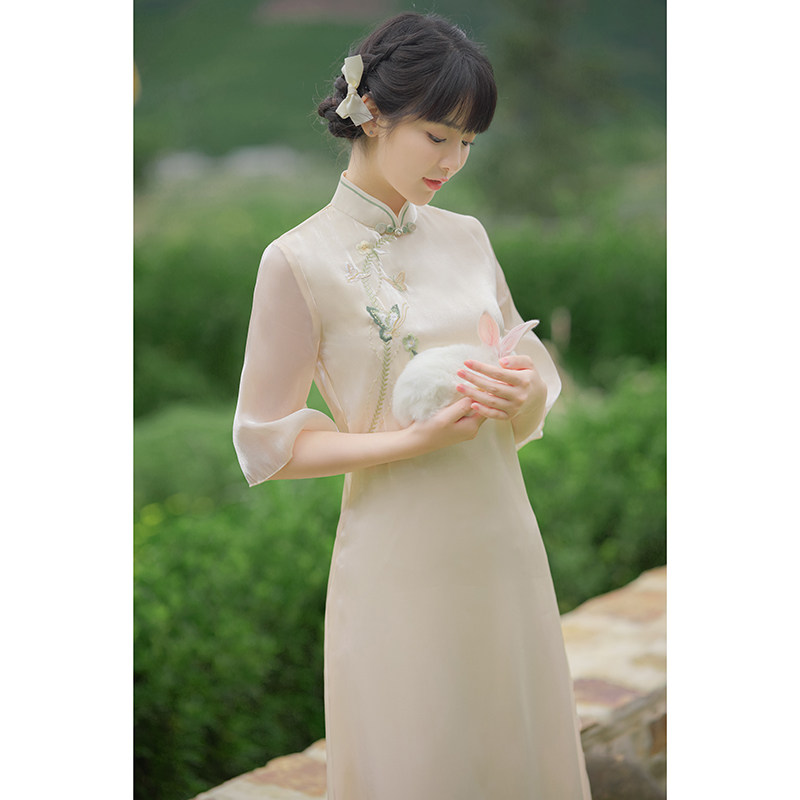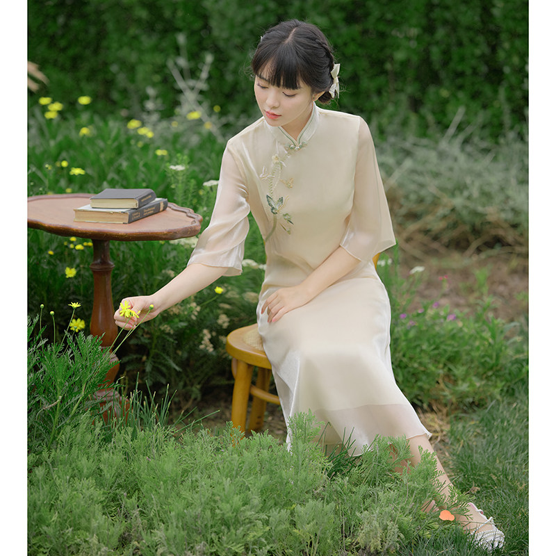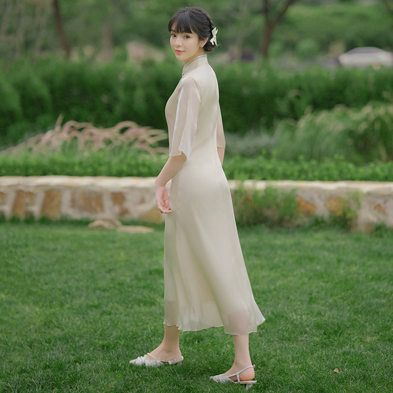 Hpoetry-Shirty Improved Version Qipao 2022 New Summer High-end Odei Converse Big Sleeve Temperament Young Girl's Young Long Edition