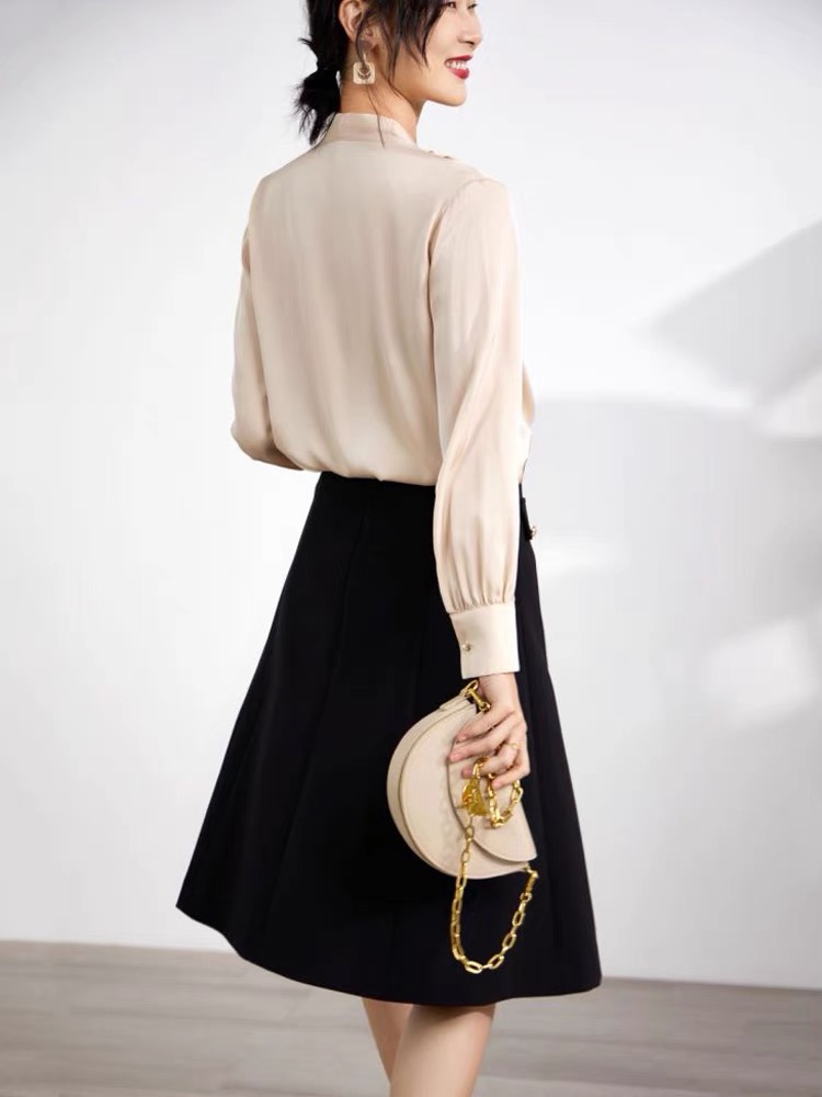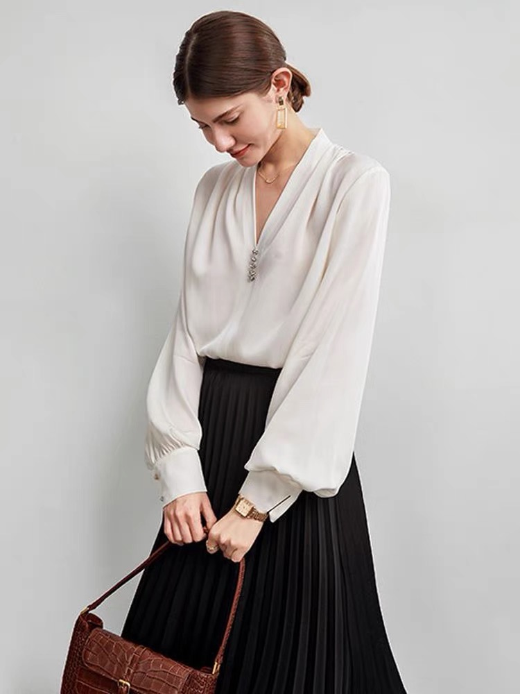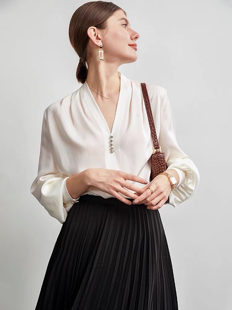 2022 spring new domestic mulberry silk long-sleeved shirt all-match tops silk shirts