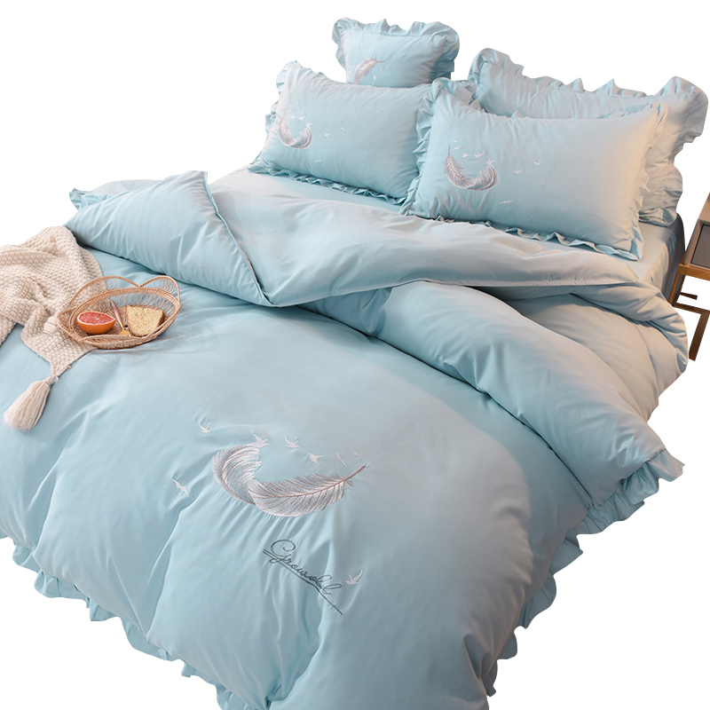 European-style light luxury embroidery four-piece bed skirt with non-slip princess style quilt cover girl heart pure cotton cotton naked sleep