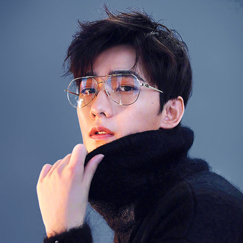 Glasses frame male pilot double beam pure titanium big face thin myopia eye frame frame female titanium frame can be equipped with lenses