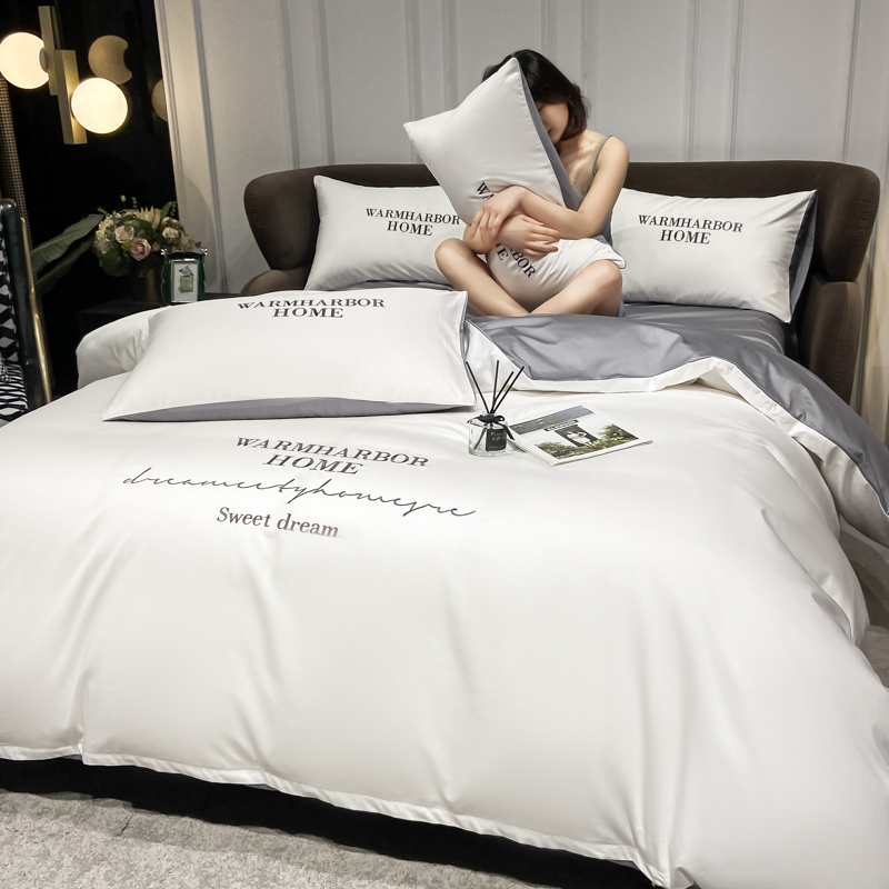 Simple light luxury style four-piece bed set cotton pure cotton bedding brushed bed linen quilt cover solid color three-piece set