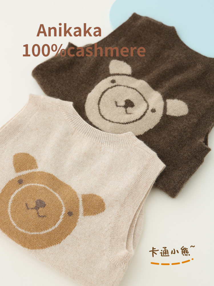 Boy pure mountain cashmere sweater 2022 spring autumn new children sleeveless knit waistcoat girl foreign air vest child clothing
