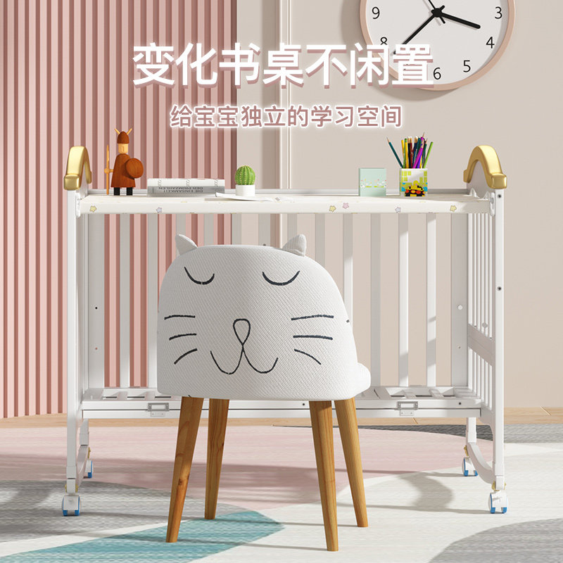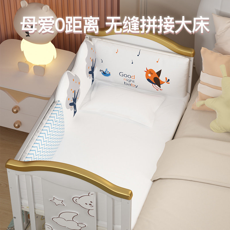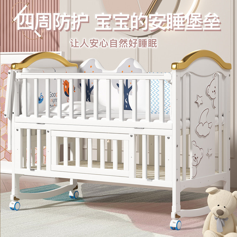 Iridge Baby Cribs Solid Wood Splice Double-size bed European-style Multi-function Baby BB Cradle Newborn Child Bed Mobile