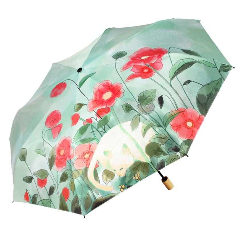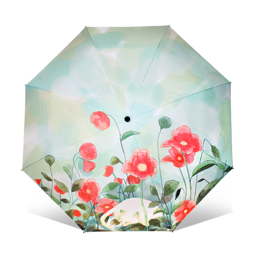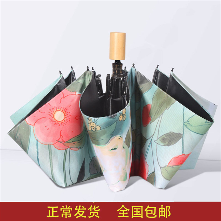 Japan CK sunshade Handpainted Mori Department Fold Clear Rain Dual-use Little Fresher Goddess Black Glue Shade Sun Protection UV Rays