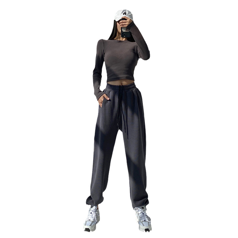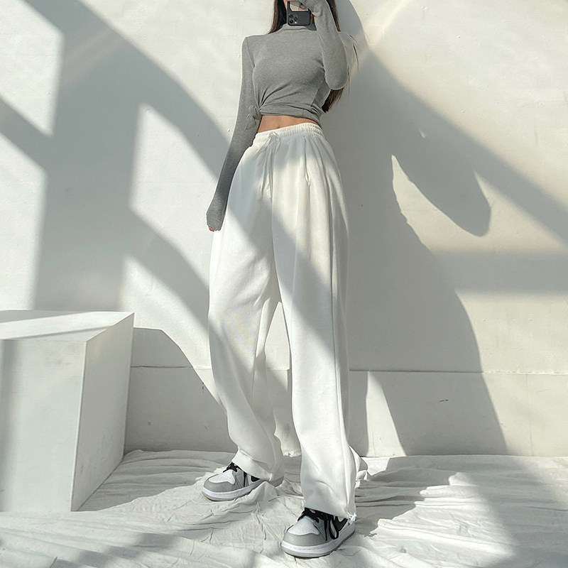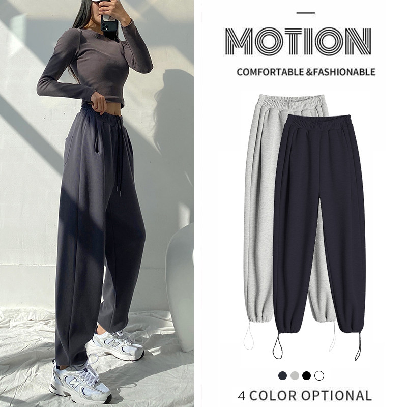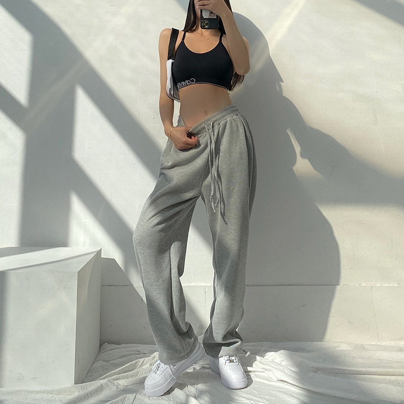 Grey Sports Pants Women Summer 2022 New Loose Straight Drum Wide Pants High Street Ins Tide Casual Bungles Pants