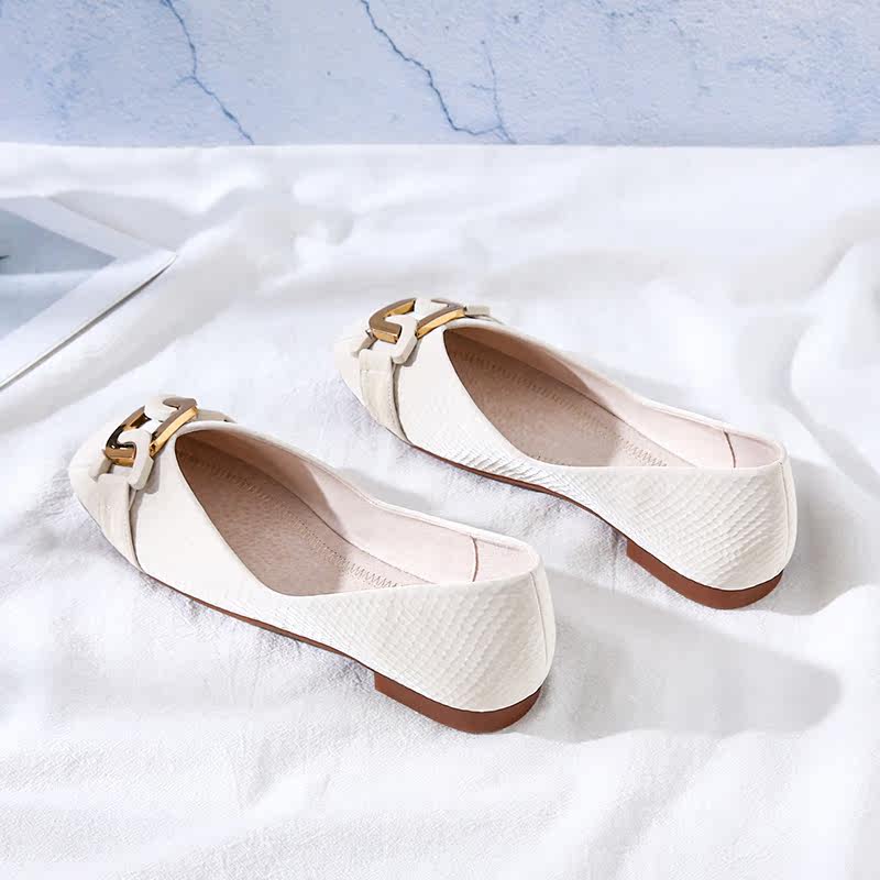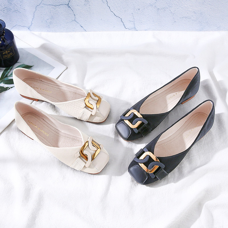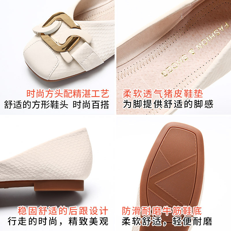 Bean-bean shoes 2022 New women Summer thin Leather Bull Gluten Soft Bottom Square Head Shoes Shallow flat Grandmother Shoe