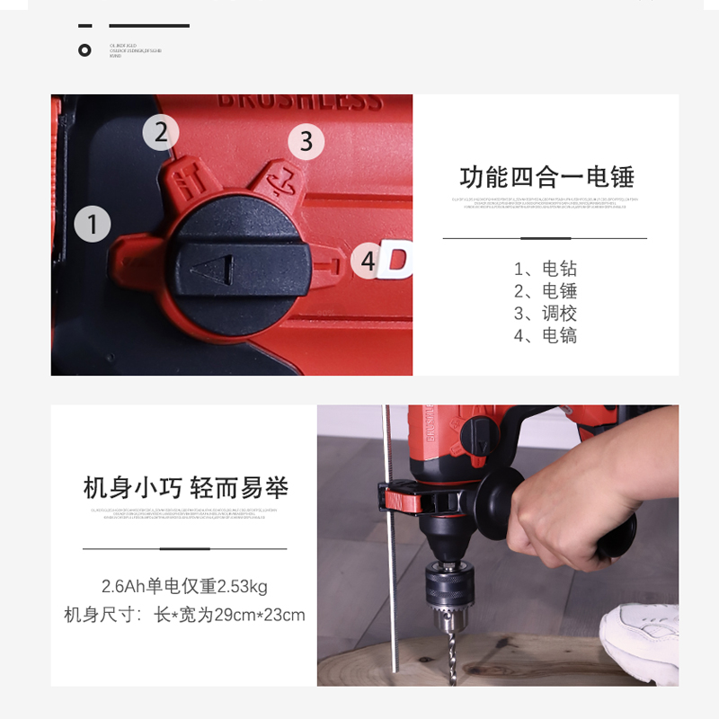 Great 5401 brushless electric hammer rechargeable electric pick electric drill three use concrete high power multifunction impact electric drill-Taobao