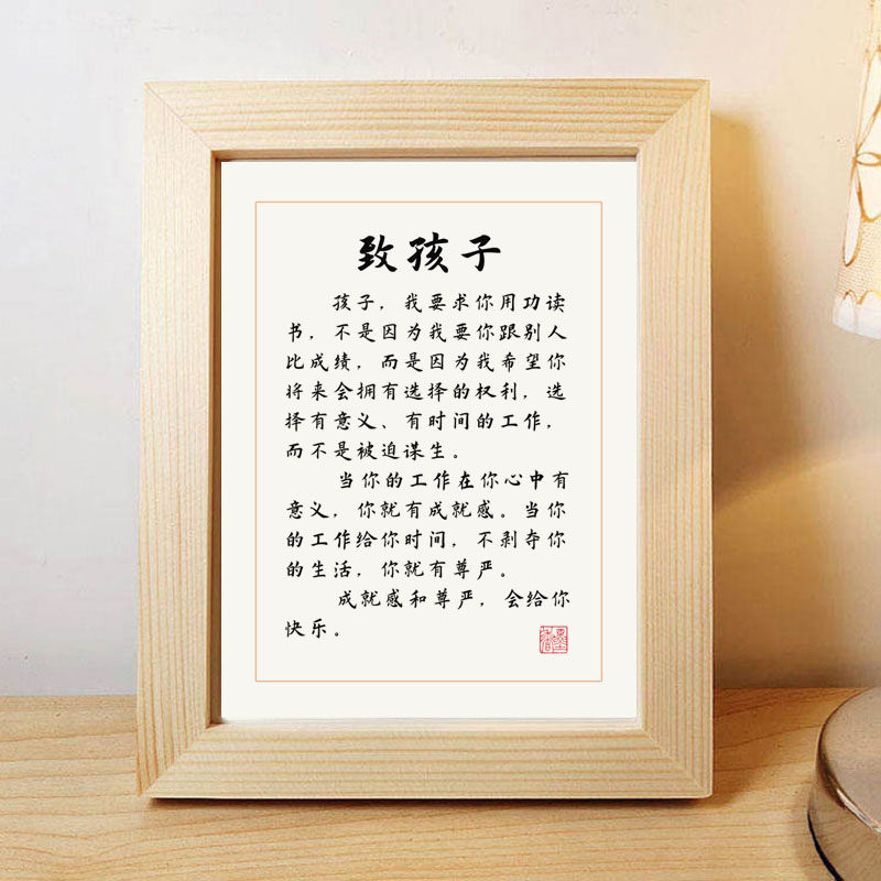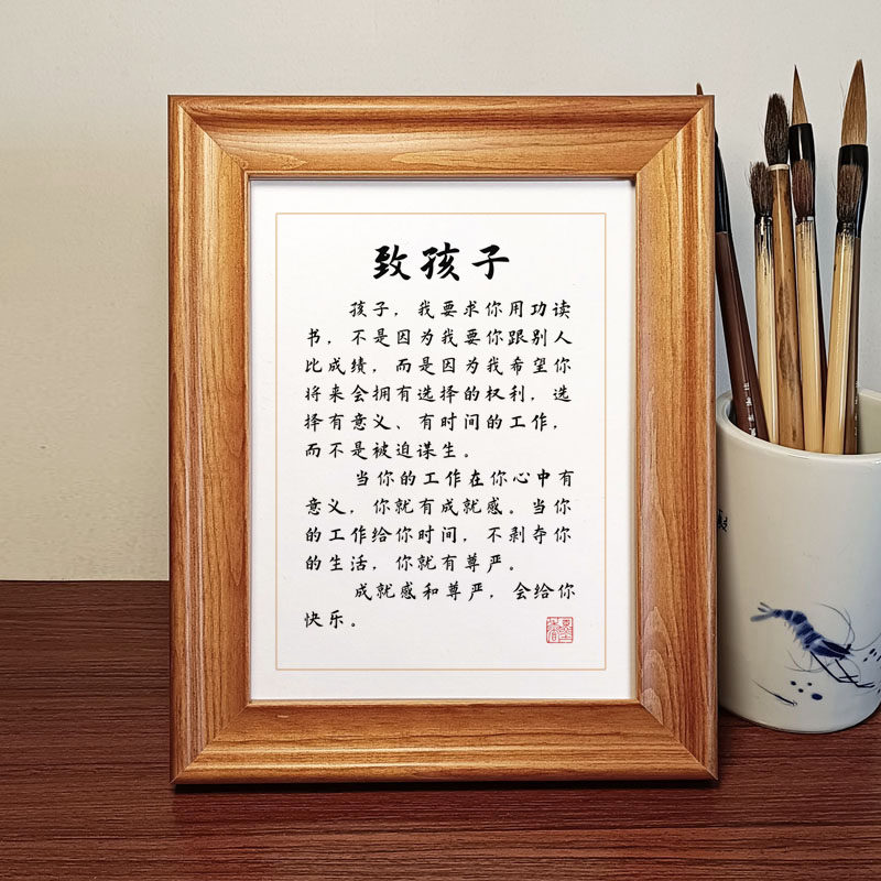 Zhi Chi-student Motivashi Slogan Pendulum Pieces Calligraphy Works Solid Wood Photo Frame Desk Stands for Right Inscription and Painting and Painting