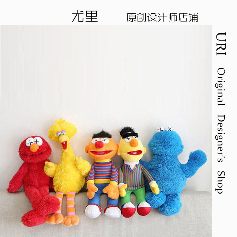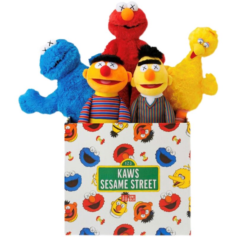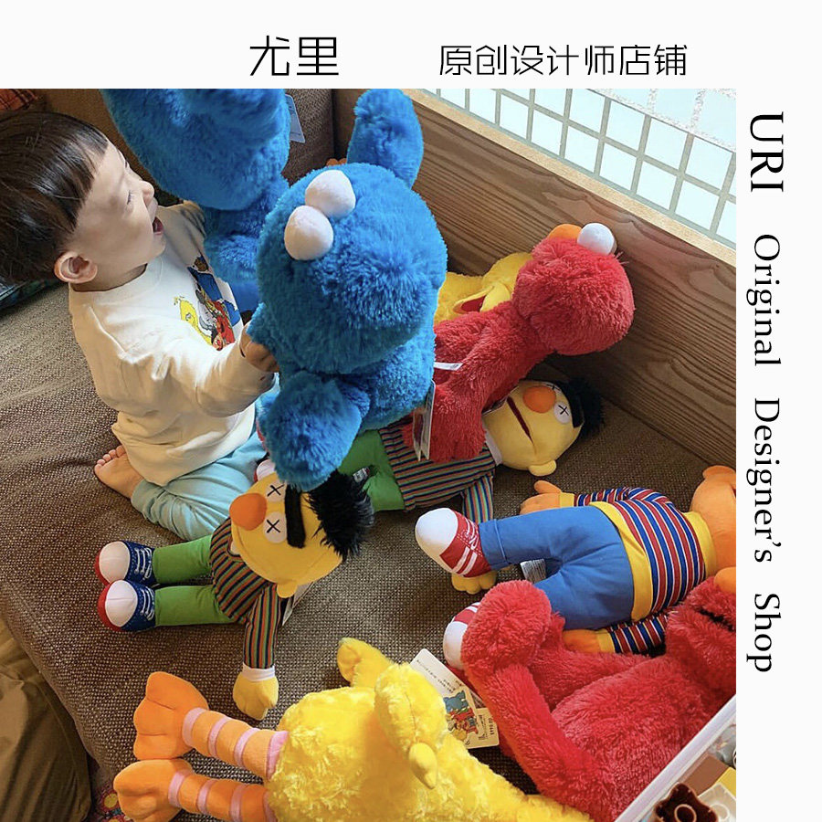 Trend joint KAWSUniqlo with Tongan Sesame Street Paparazzi Plush Hug Pillow Toy Holiday Gift Home Decoration