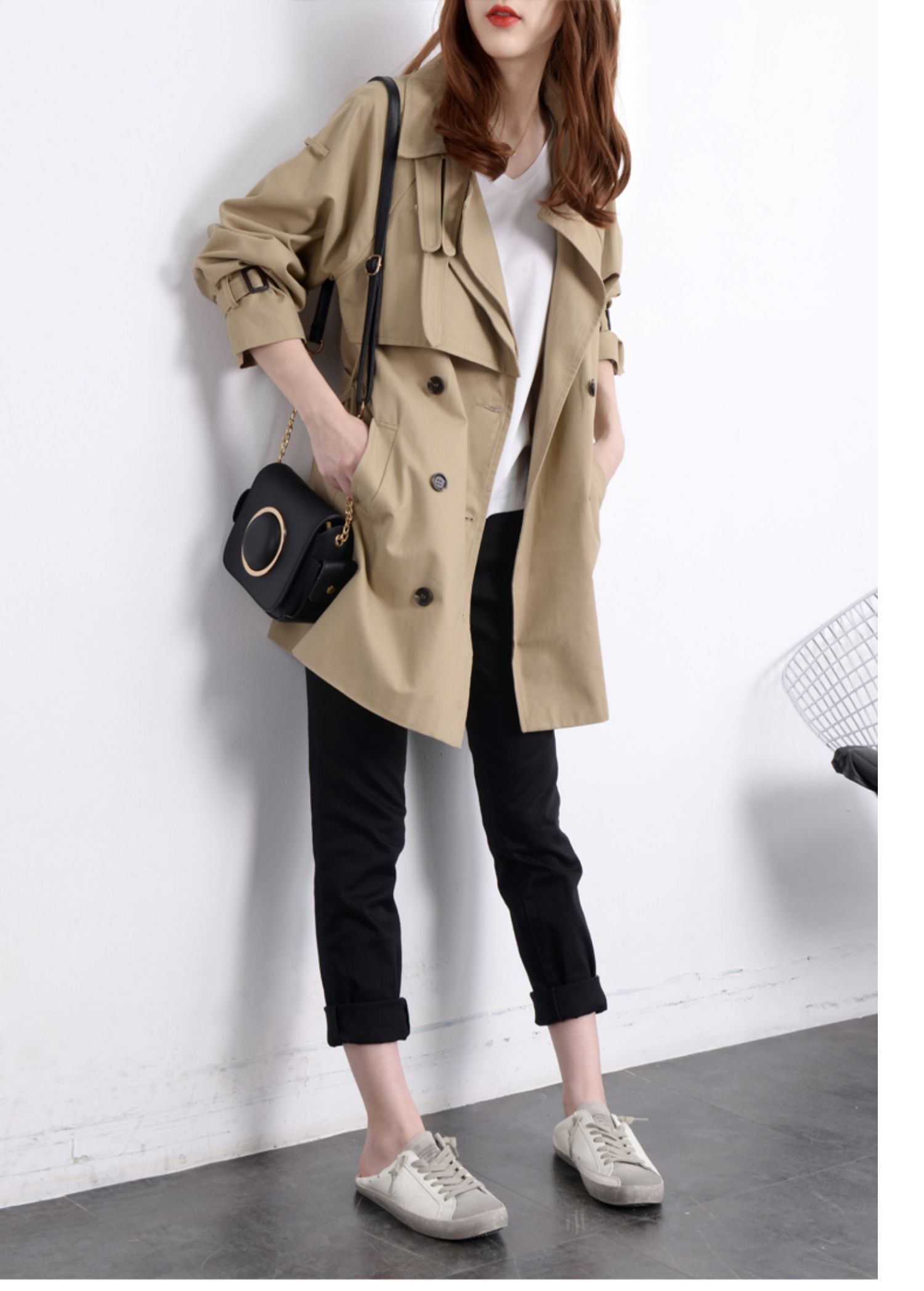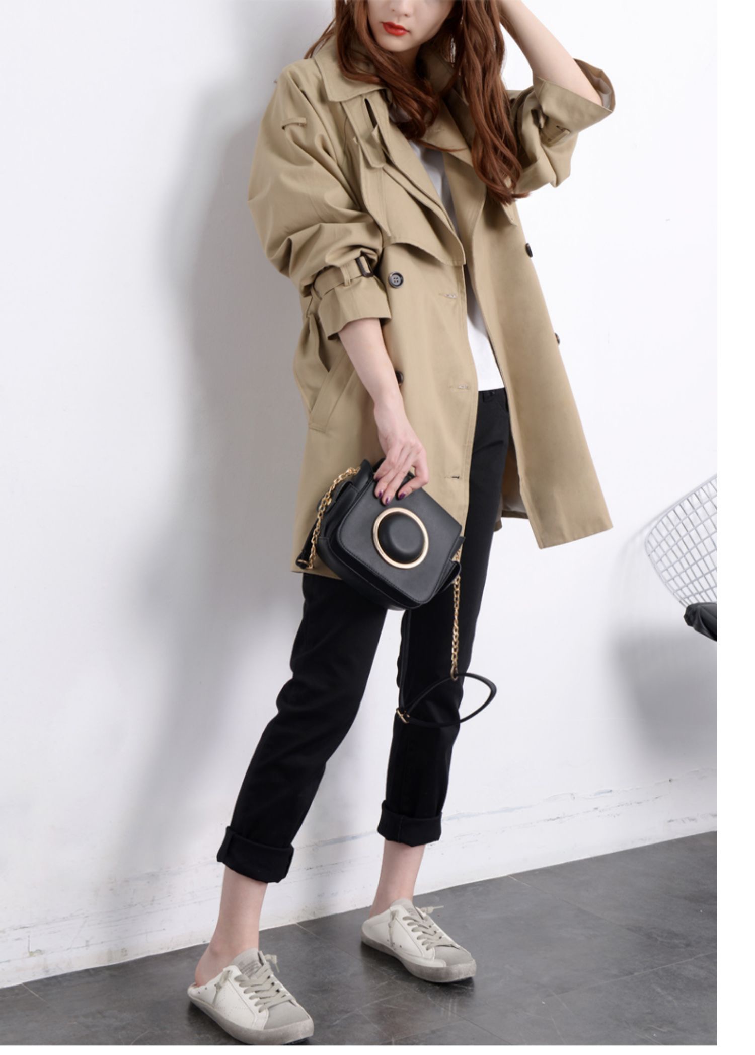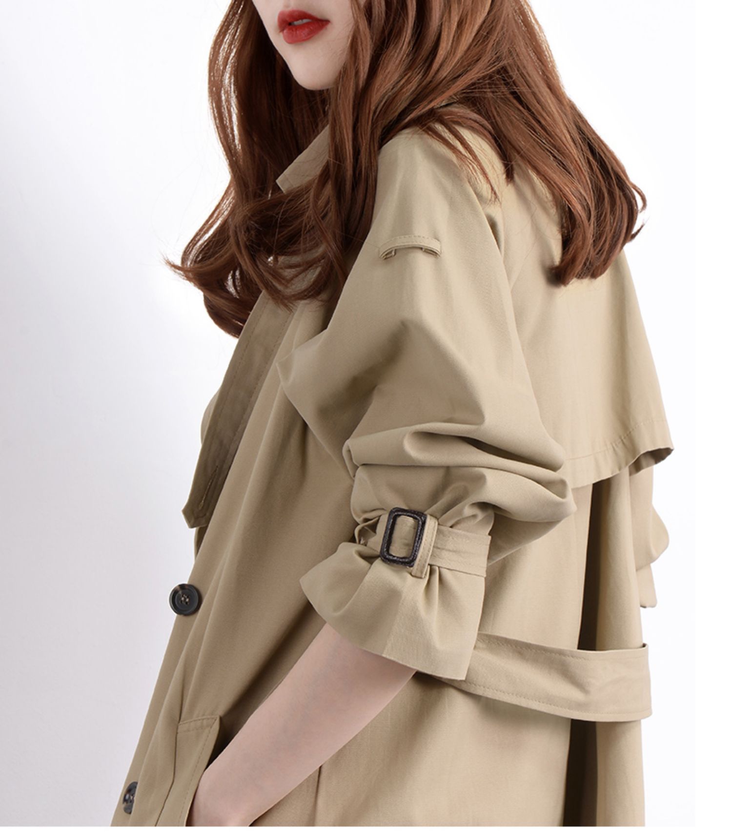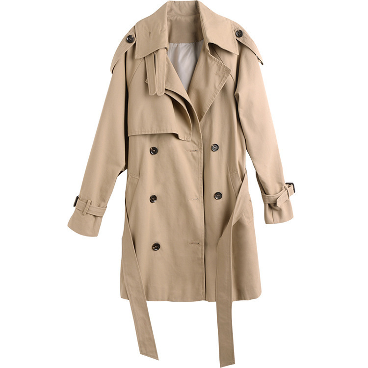 2021 Spring autumn new domestic long sleeves Slim Double buckle with long version of the wind coat jacket woman