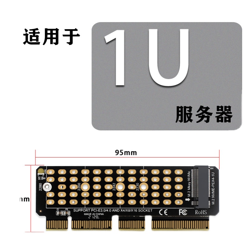 PH41-1U NVME riser card M 2 to PCIE4 0 full speed X4 expansion MKEY support 1U server