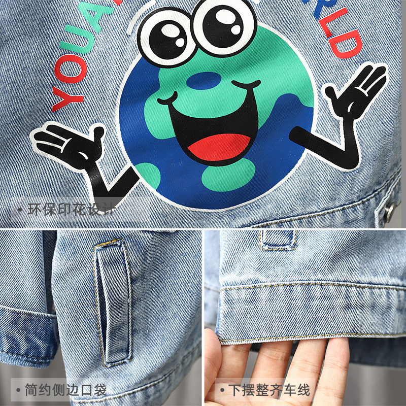 2022 Spring Autumn Season New Boy Clothing Boy Cartoon Blouse Korean Version Children Cowboy Jacket Boy Boy Long Sleeve