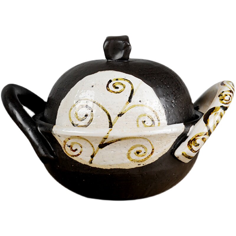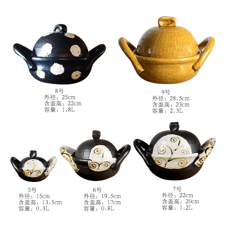 Japan Meinesco burns large ear Handmade in a pan and saucepan saucepan saucepan with a cooking pan and a pan with a stone.