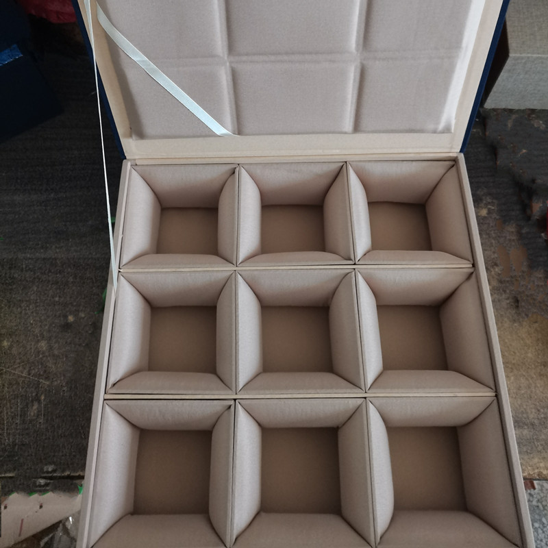 Multi grid blue cloth twelve grid nine grid porcelain cup tea set brocade box cup storage box jade gift box factory direct sales