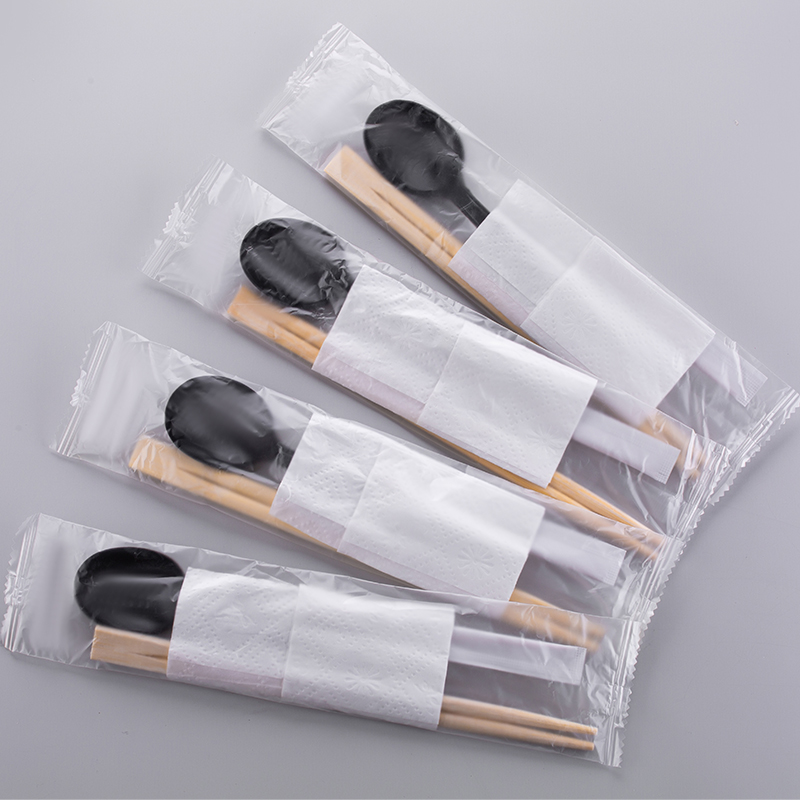 Disposable chopsticks set takeaway tableware bag four-in-one four-in-one KFC spoon paper towel toothpick transparent packaging