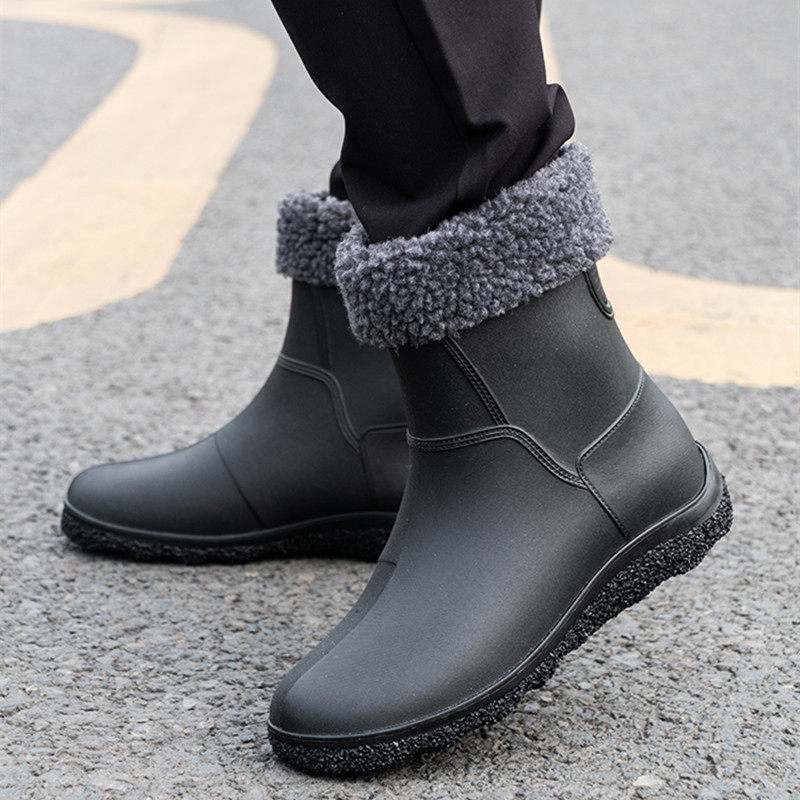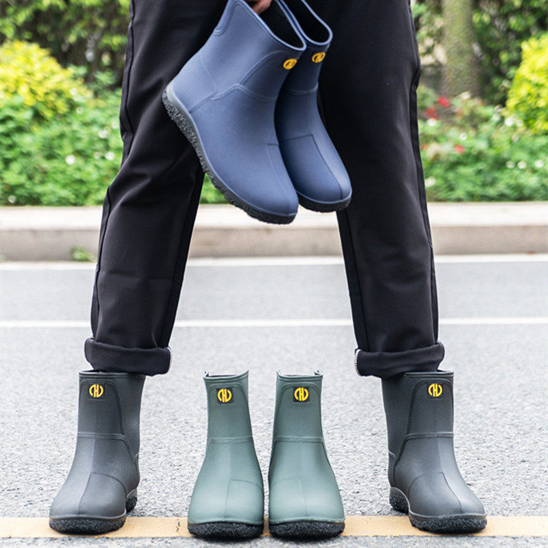 Rain boots men's summer rain boots short tube fashion men's rain boots waterproof non-slip rubber shoes light mid-tube kitchen trendy shoes