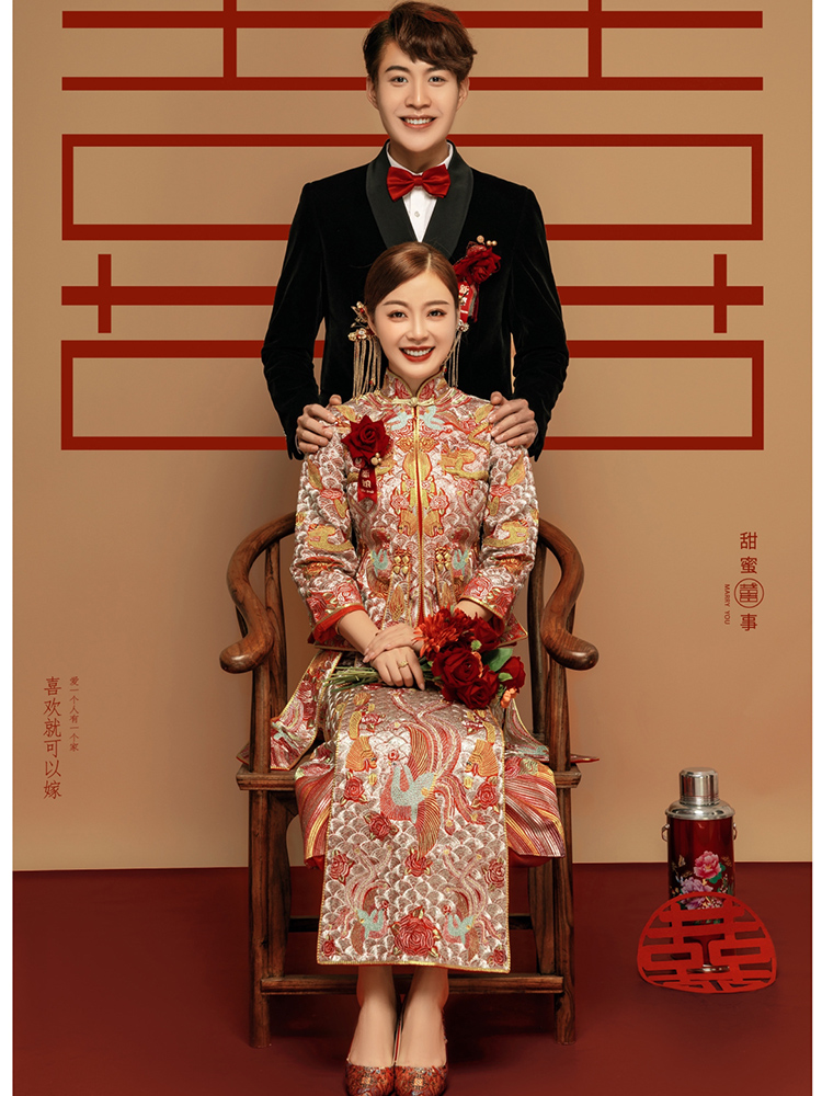 Golden Xiuhe clothing bride 2021 new wedding Chinese wedding dress self-cultivation big five blessing dragon and phoenix hanging out of the pavilion in winter