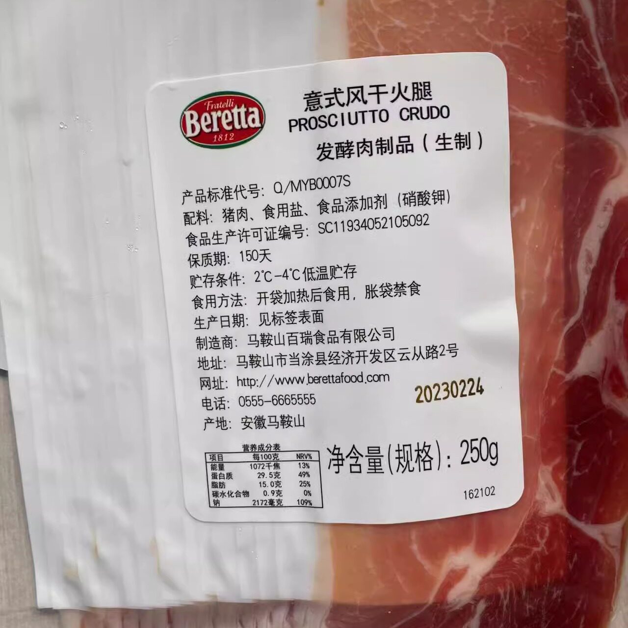 Barry 250G Italian air-dried ham slices Italian-style air-dried fermented ham hotel western pizza ingredients