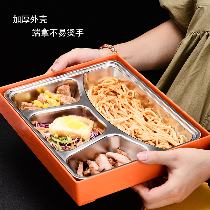 Royal Blue Shell Stainless Steel 3 1 Dinner Plate Royal Blue Shell Stainless Steel Round Four-Grid Dinner Plate Royal Blue Shell Stainless Steel Large Four-Grid Dinner Plate Royal Blue Shell Stainless Steel Large Five-Grid Dinner Plate White Outer
