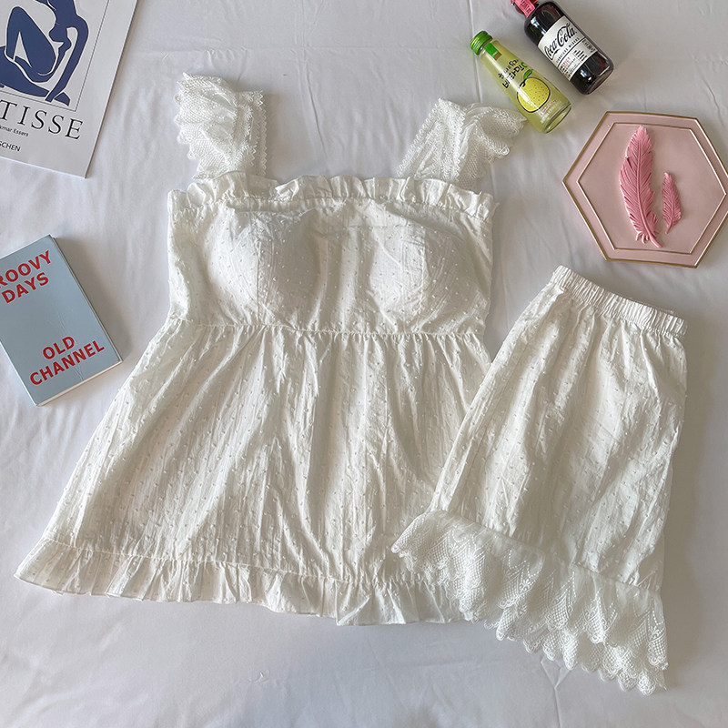 Pajamas women's summer cotton suspenders 2021 new suits large size with chest pads high-end princess style home clothes
