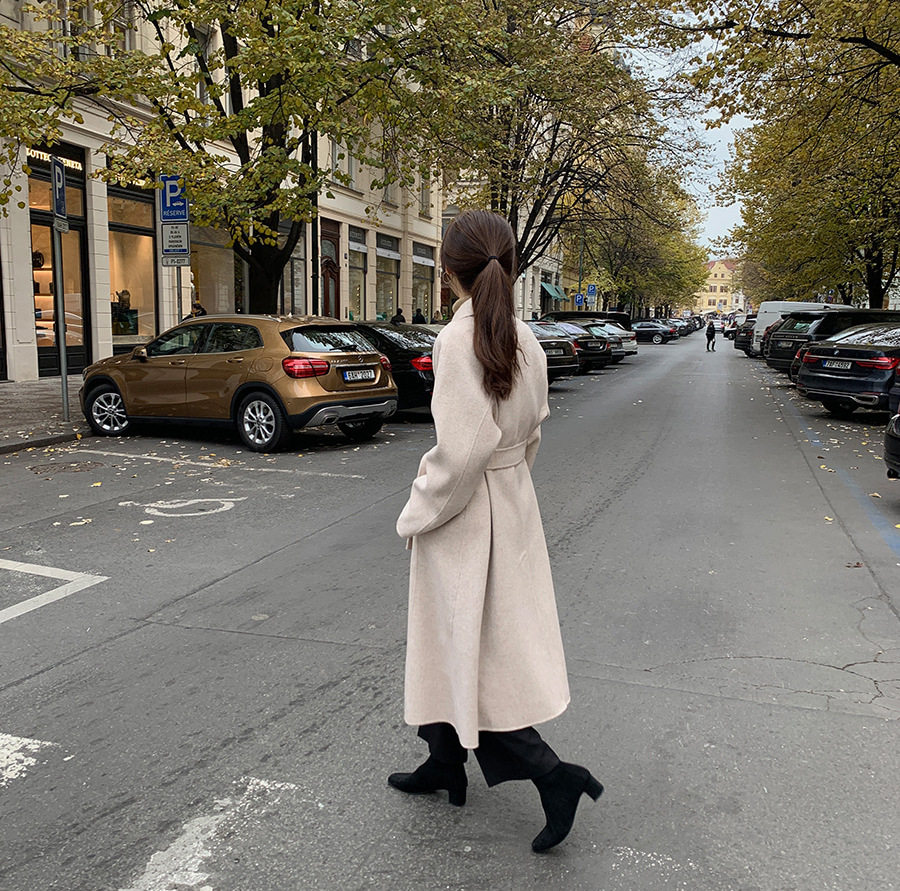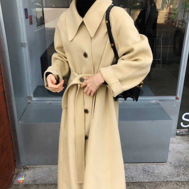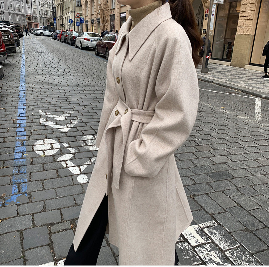 Double face cashmere big coat female medium long version 2022 new Korean version dolls collar black bifacial hair coat women