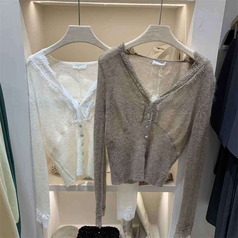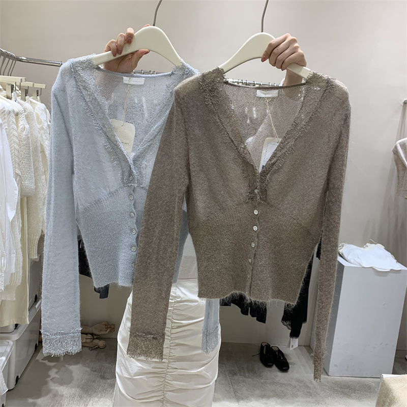 FORLOVENANCY love and Nancy 2022 new V-neck pure desire wind lace stitching wool sweater women 21206