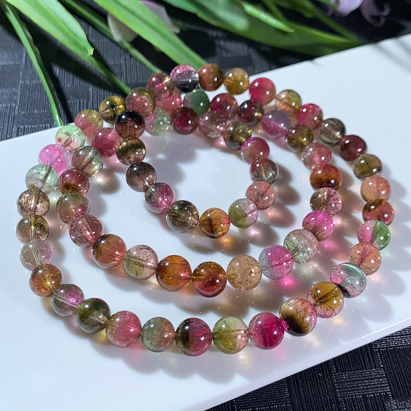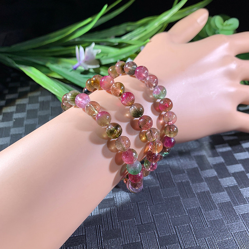 7 5 mm 50 1 gr natural dream watermelon Beatrix bracelet with three rings bicolor crystal original stone handstring woman 64553