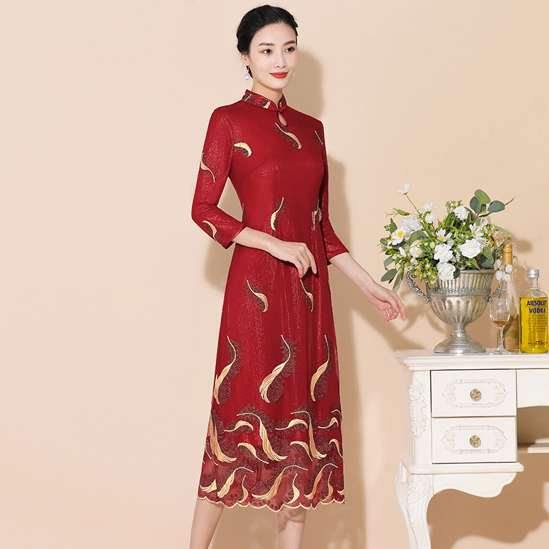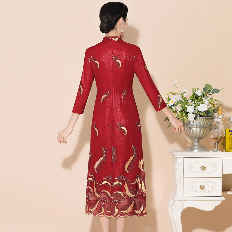 Happy mother-in-law wedding dress cheongsam high-end dress middle-aged mother's wedding bride autumn dress mother-in-law married daughter