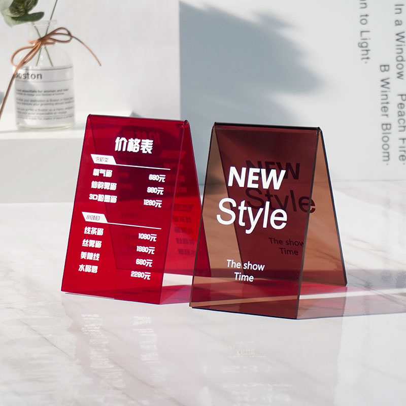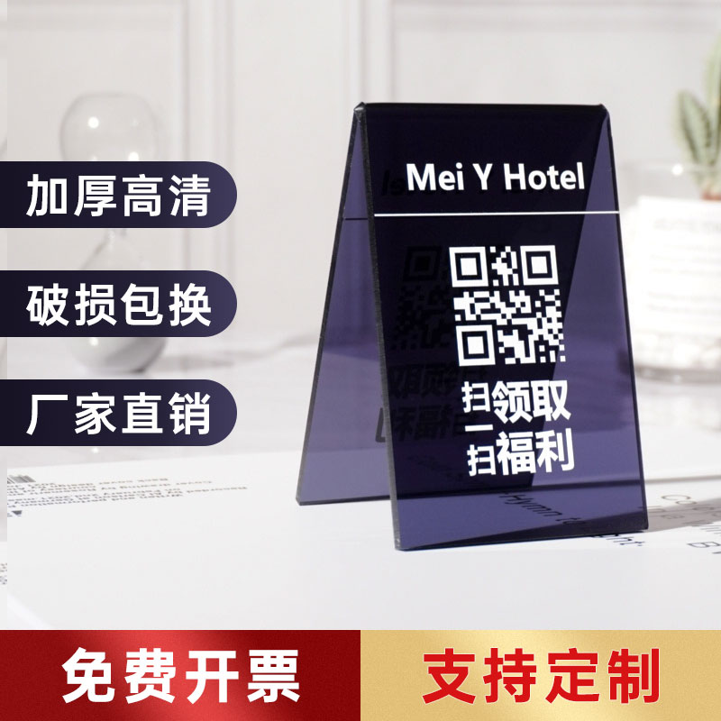 Acrylic two-dimensional code table card display card custom double-sided transparent member recharge table card custom price list design and production billboard display table L-shaped stand card hairdressing price card ins table card